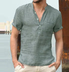 Men's Shirt Short Sleeve – Regular Fit – Natural Fibers – Band Collar – Chest Pocket