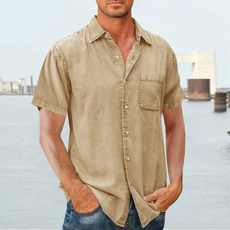 Men's Shirt Short Sleeve – Relaxed Fit – Breathable – Buttons – Chest Pocket