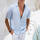 Men's Shirt – Relaxed Fit – Deep V-Neck – Notch Lapel – Short Sleeve – Breathable