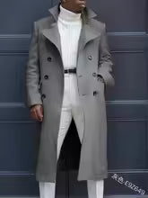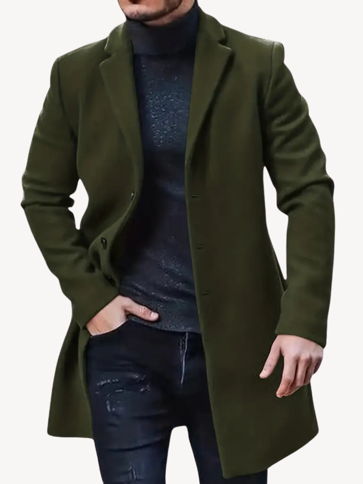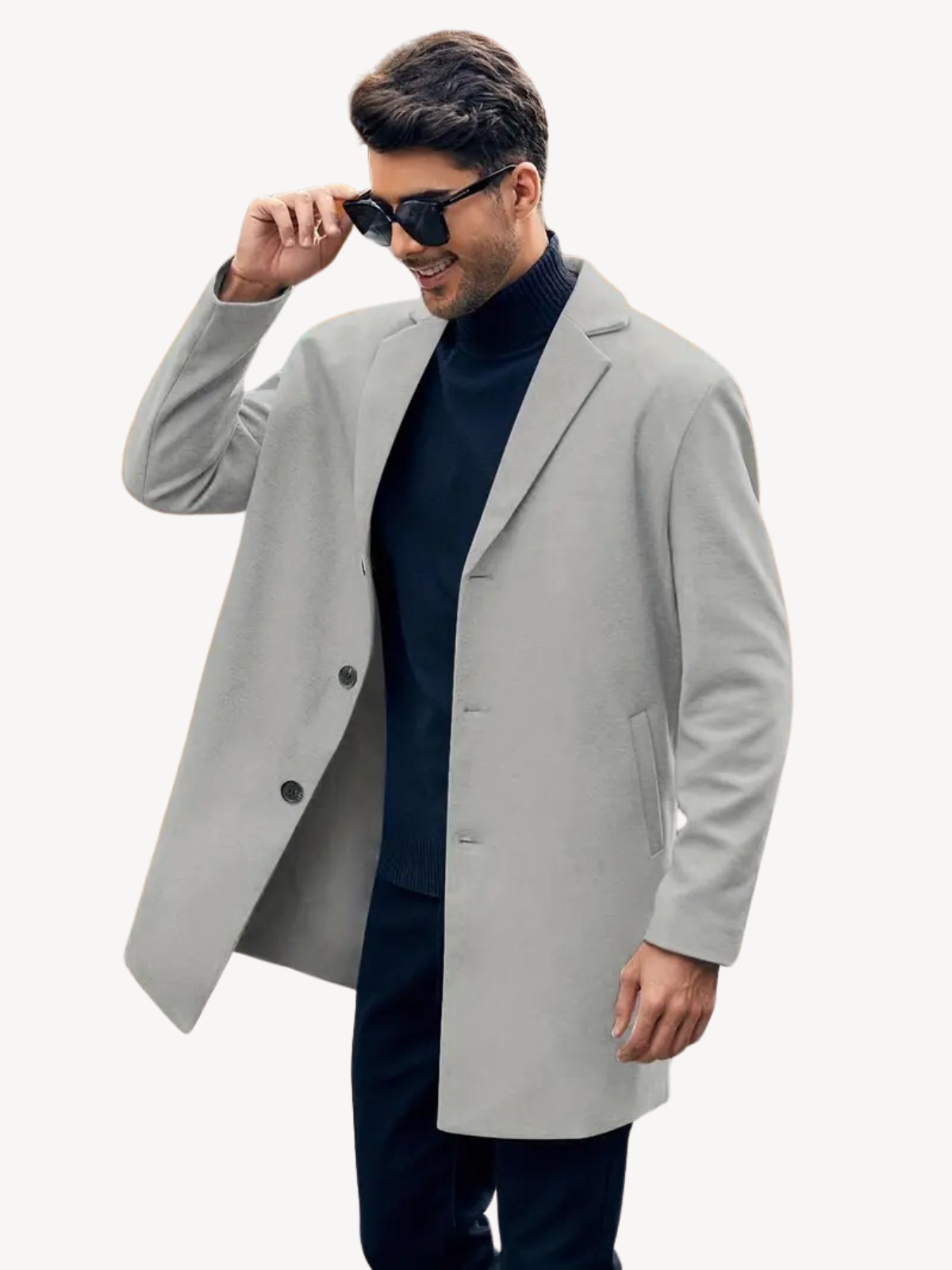 Men's Trench Coat – Wool Blend – Tailored Fit – Full Length – Notched Collar – Button Closure