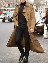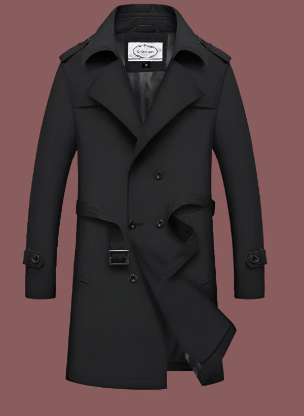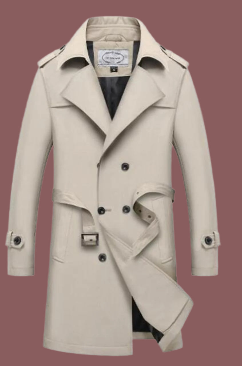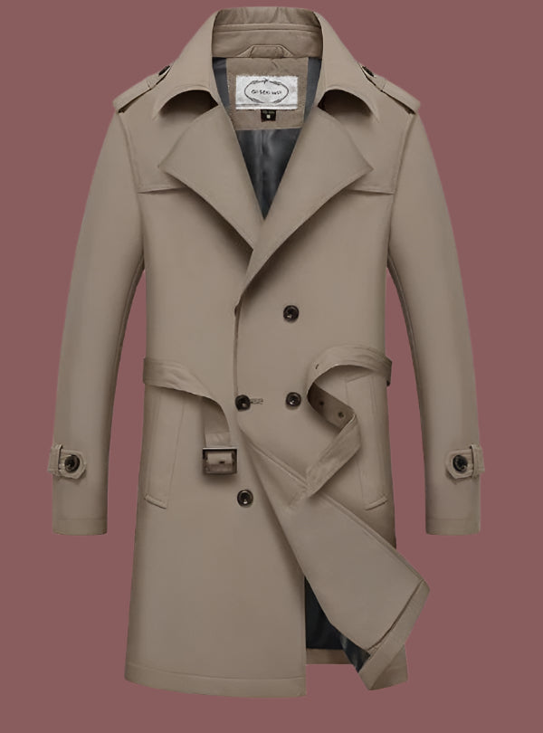 Men's Trench Coat – Tailored Fit – Double-Breasted – Belt – Breathable Material