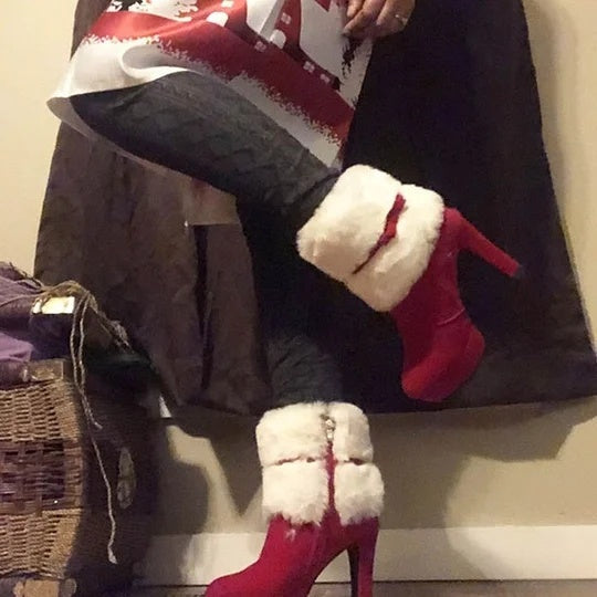 These elegant ankle boots with high heels combine the vibrant colors red and black for a striking winter style. With a refined design and comfortable fit, these boots are ideal for cold days, while giving your look a chic and fashionable touch.
