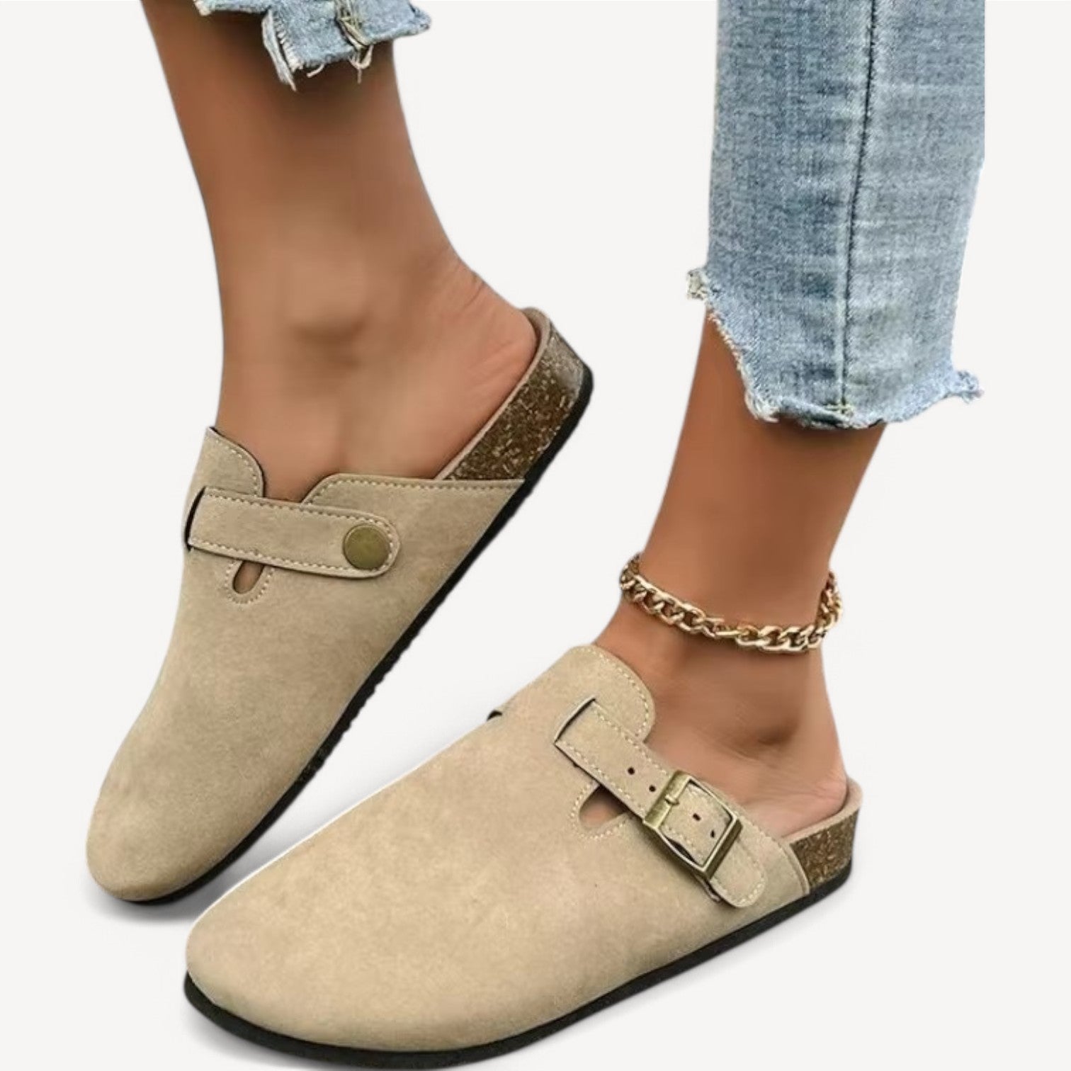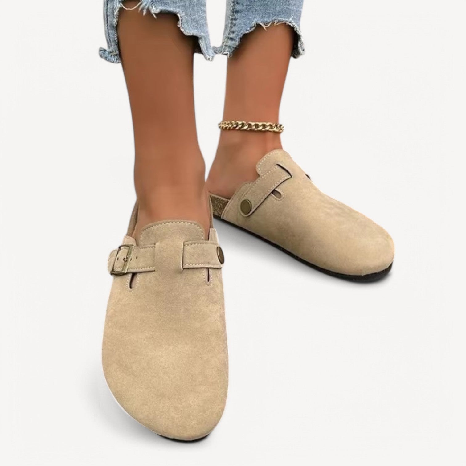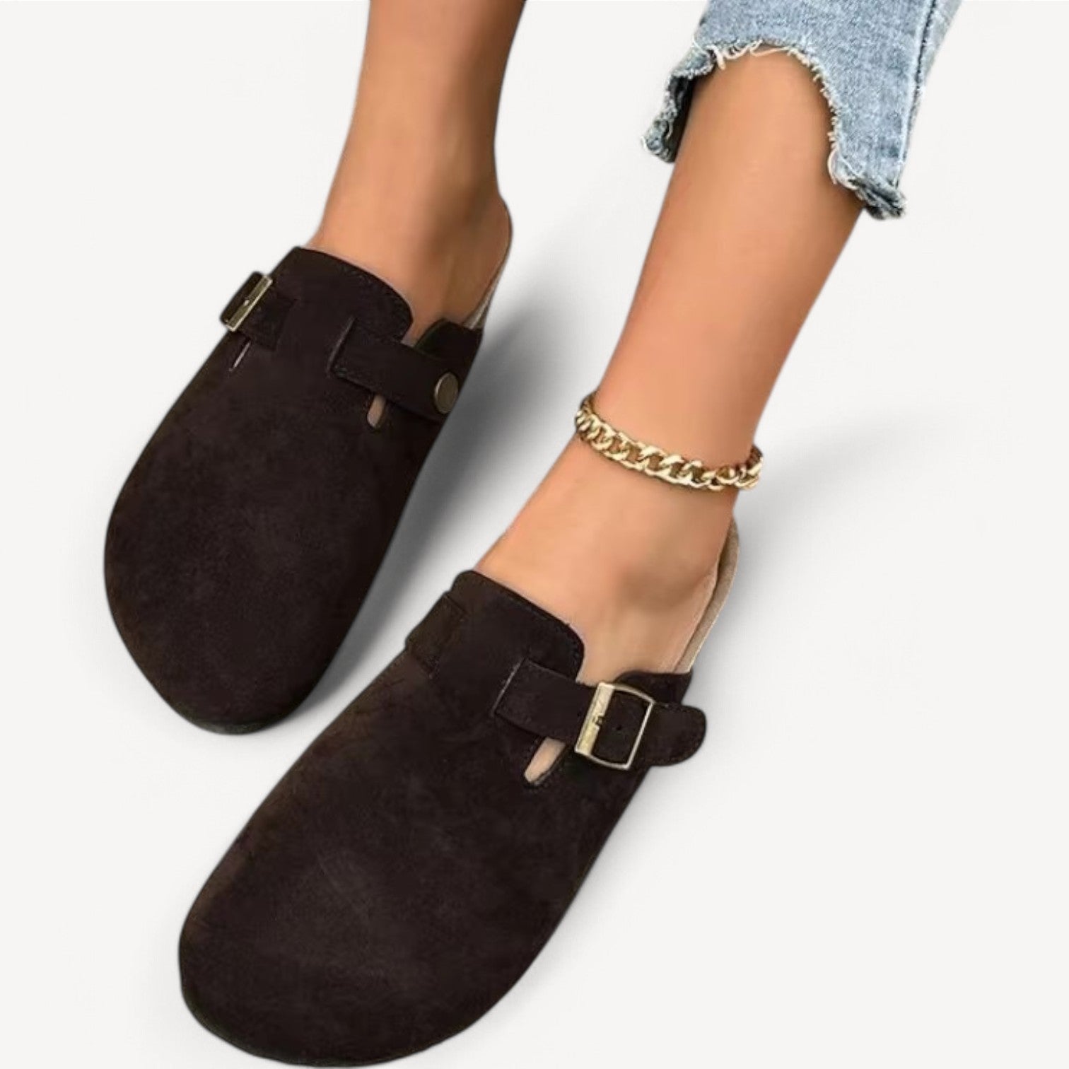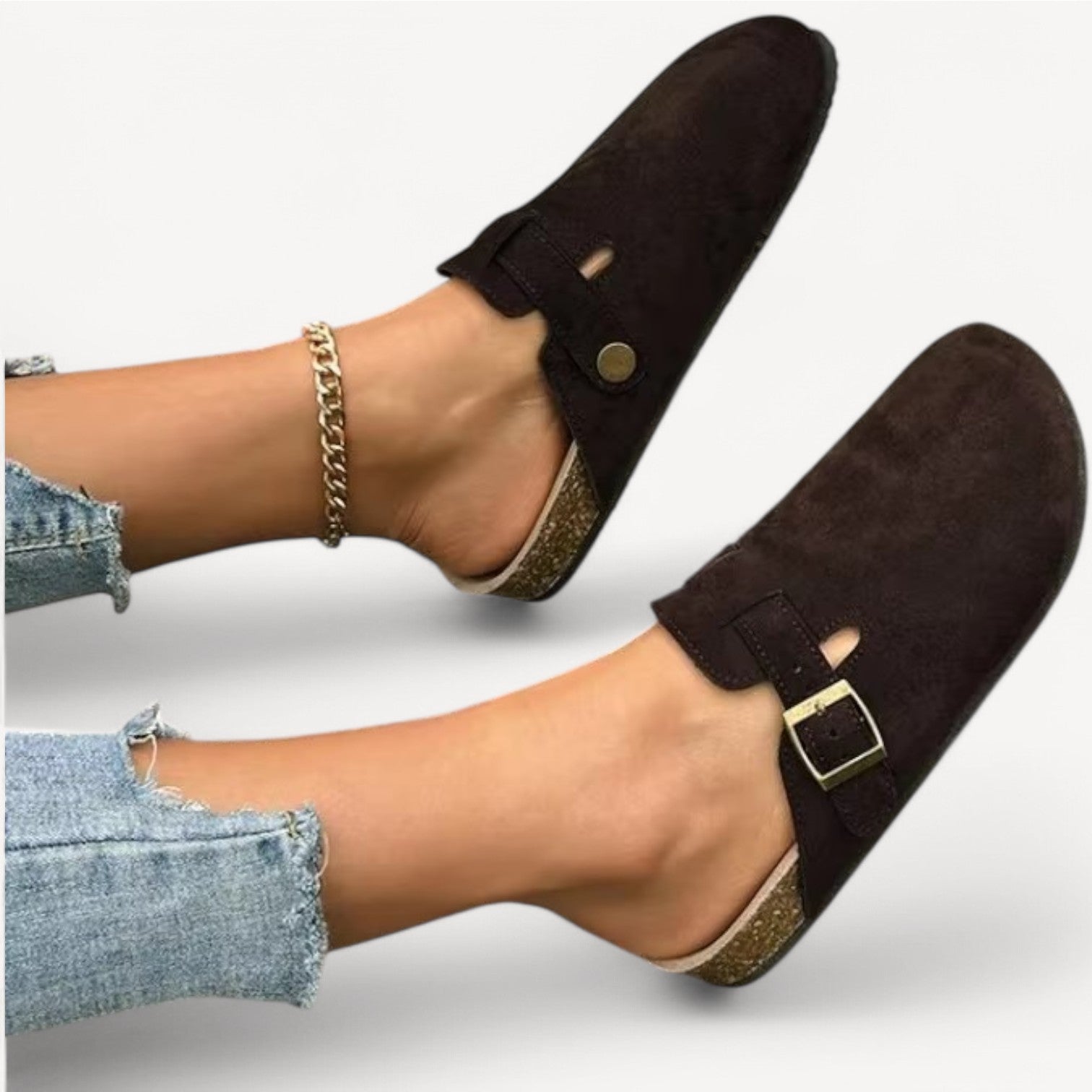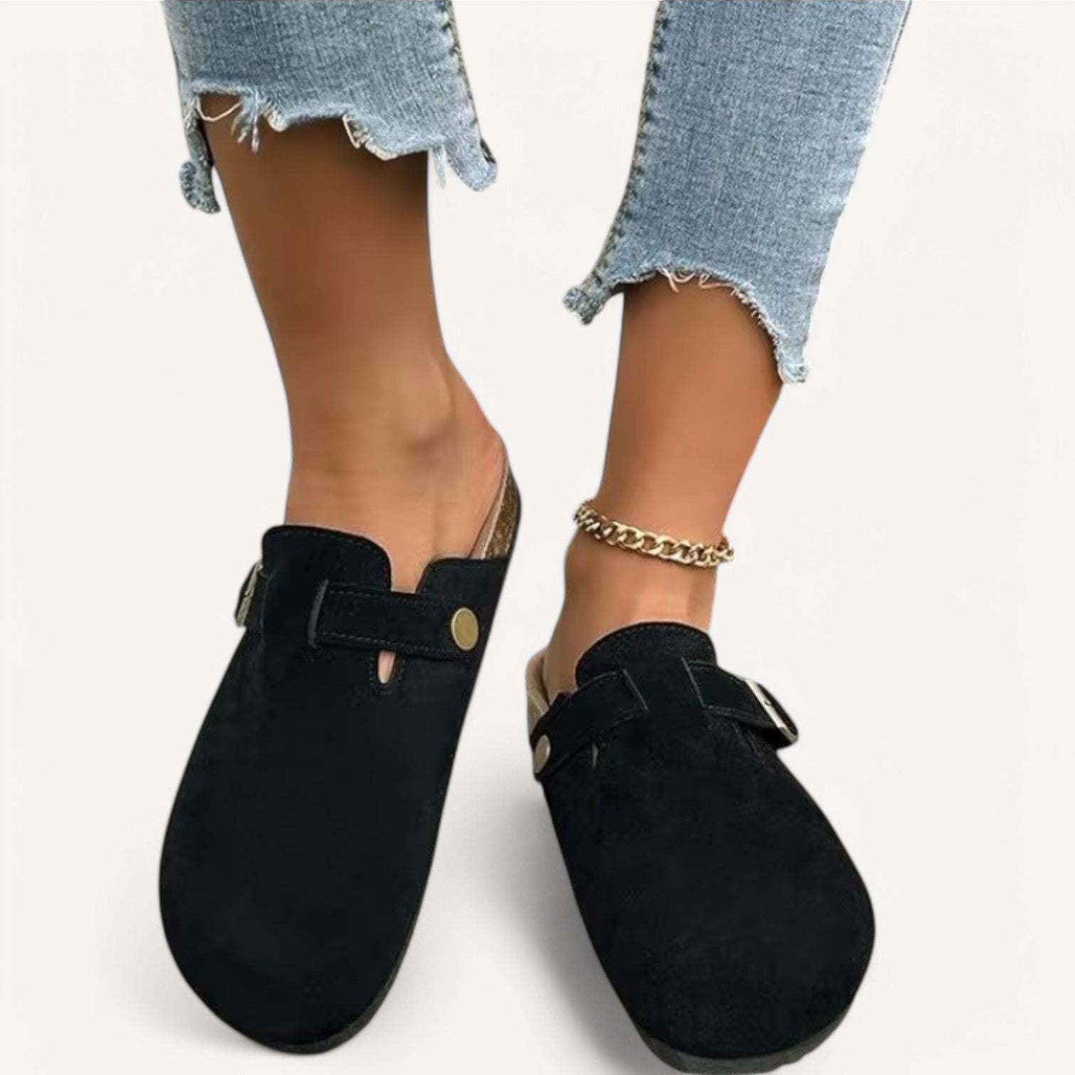 Jules | Women's Slip-Ons with Buckle – Suede-Look Clog Model