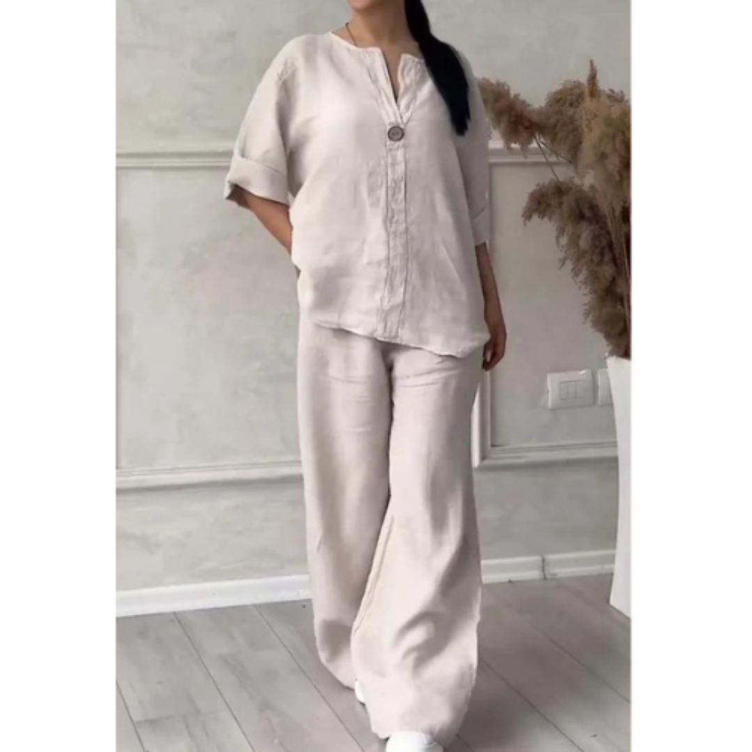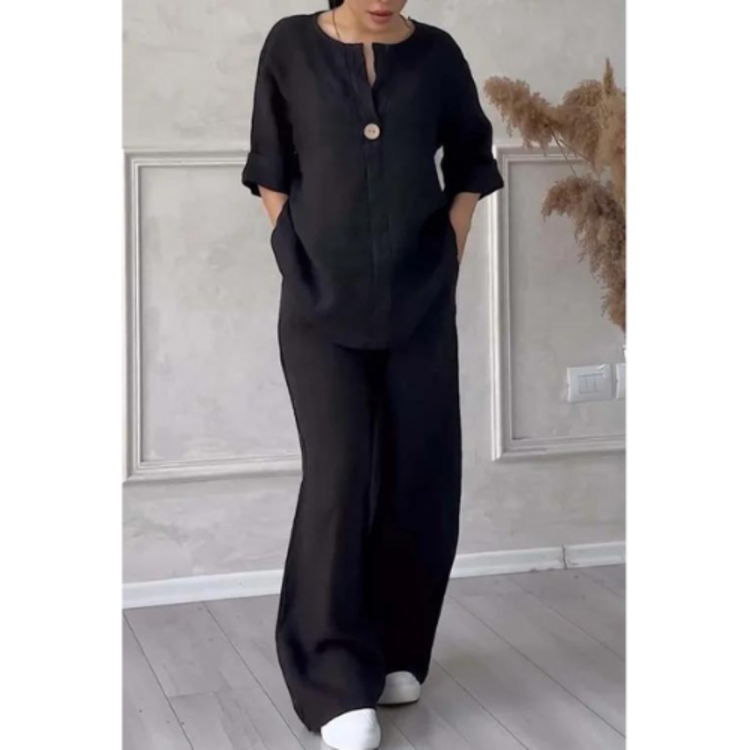 This set offers everything you're looking for in a comfortable outfit. The combination of a casual top and matching trousers provides a relaxed look that effortlessly fits into your daily routine. Whether you're at home, running errands, or having a casual day, this set offers the perfect balance between comfort and style.