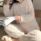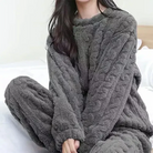 This warm and elegant set is perfect for women who want to combine comfort with a refined look. The set consists of a soft top with a simple fit and matching pants, ideal for casual occasions or cozy moments at home.