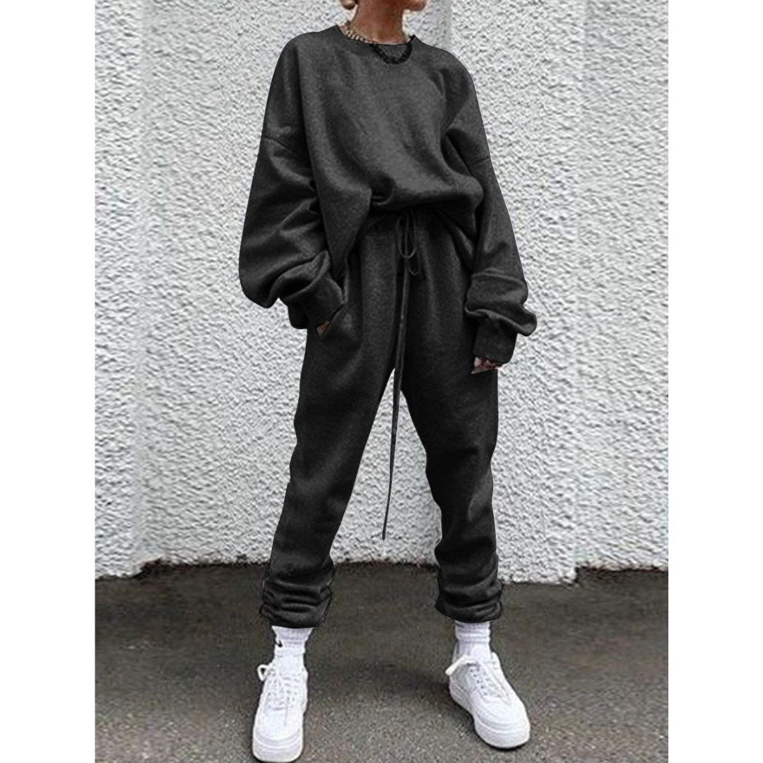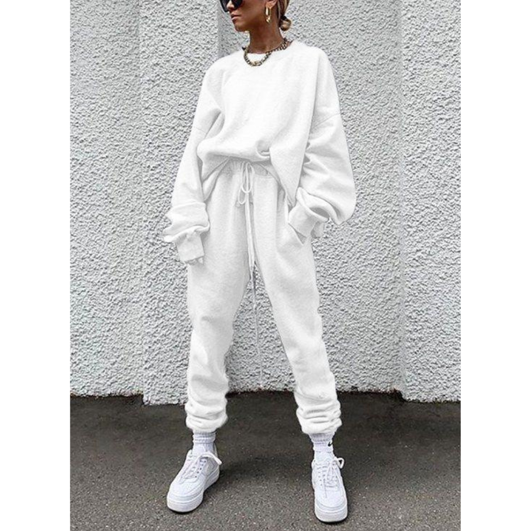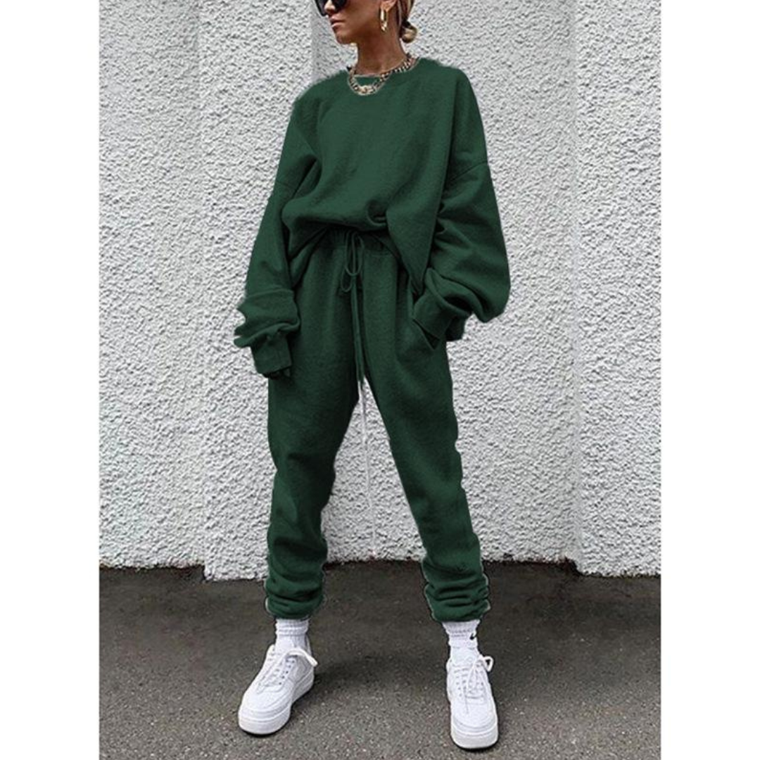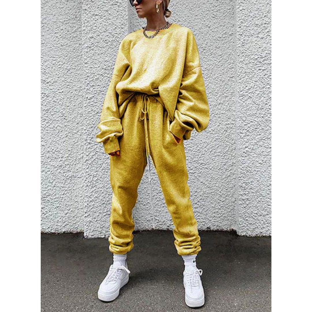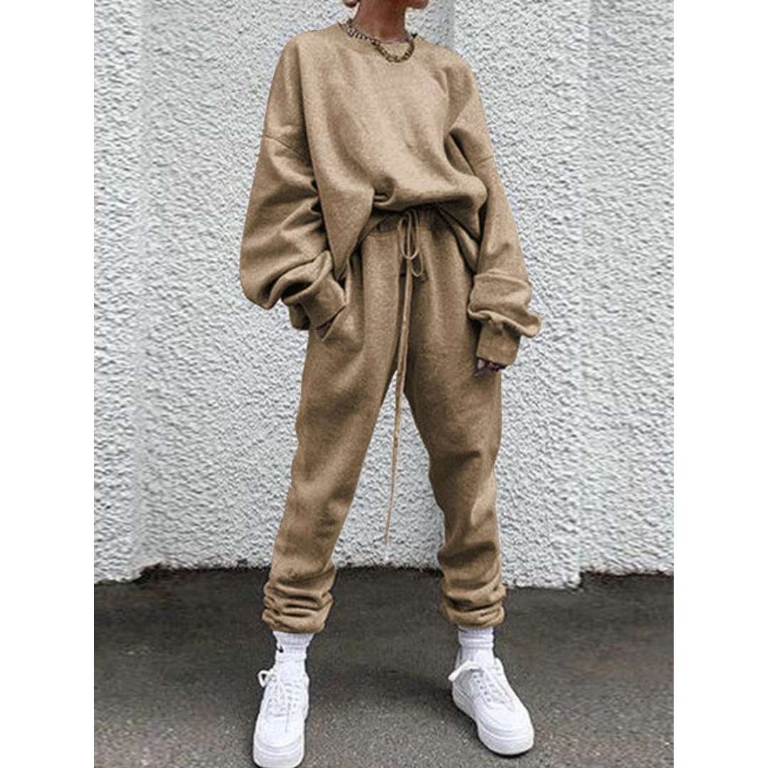 Style and comfort come together in this elegant two-piece set for women. The set consists of a refined top with long sleeves and matching pants, which keep you warm all day without compromising on appearance. Perfect for a chic yet comfortable look during a relaxed day at home or a casual outing.