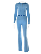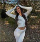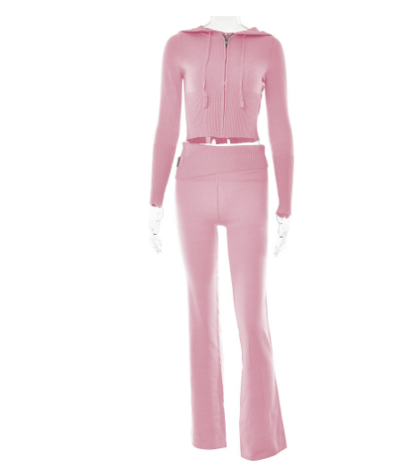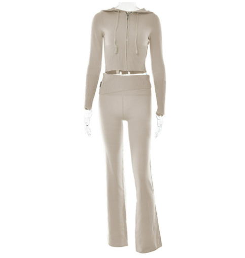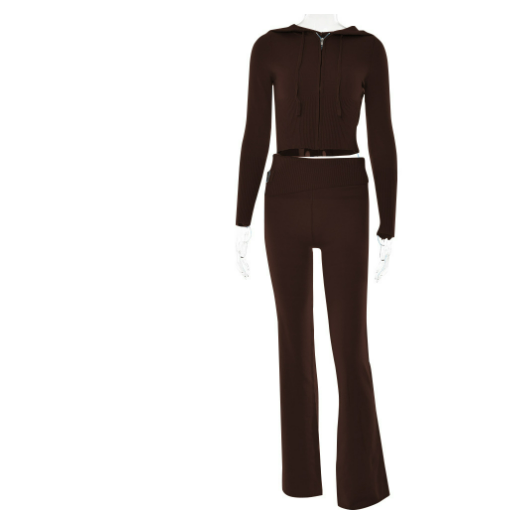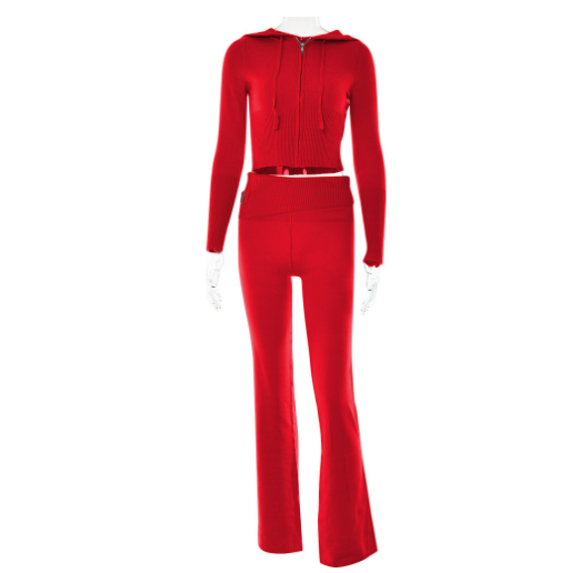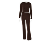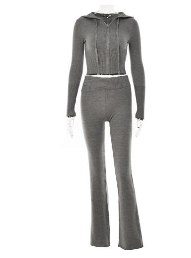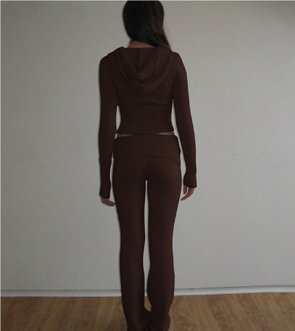 This knitwear set for women combines a stylish appearance with a comfortable fit. The set consists of a top and matching pants, designed for a modern and versatile look. Perfect for cozy days at home or casual outings, while the knitwear design adds a refined touch.