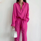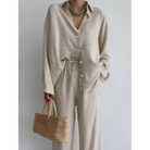 This simple set for women is designed for a relaxed and effortless look. With a minimalist top and matching pants, it's an outfit that's perfect for everyday wear. Practical, versatile and easy to wear.