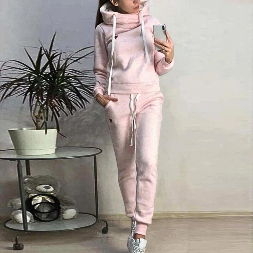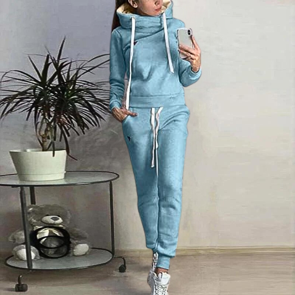 This stylish women's sportswear set consists of a form-fitting sports top and matching pants. The design stands out with subtle details and a modern look, ideal for a variety of activities. The set offers a balance between a sporty look and a trendy design, perfect for any occasion.