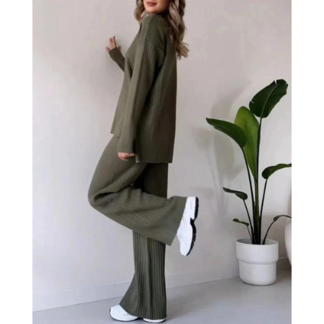 This two-piece set for women is the perfect choice for the cold winter months. The set consists of a comfortable turtleneck and a matching pair of pants, designed to keep you warm and stylish. Ideal for casual outings or relaxed days at home.