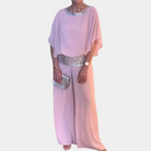 This graceful ladies set radiates elegance and simplicity. The set consists of a refined top and matching trousers, designed with subtle details that provide a stylish and timeless look. A perfect choice for both casual and formal occasions.