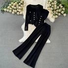 This fashionable 3-piece knit ensemble for women combines style and versatility. The set includes an elegant knit top, comfortable trousers, and a matching cardigan, designed with a refined knit pattern that is both modern and timeless. Perfect for cooler days or relaxed moments.