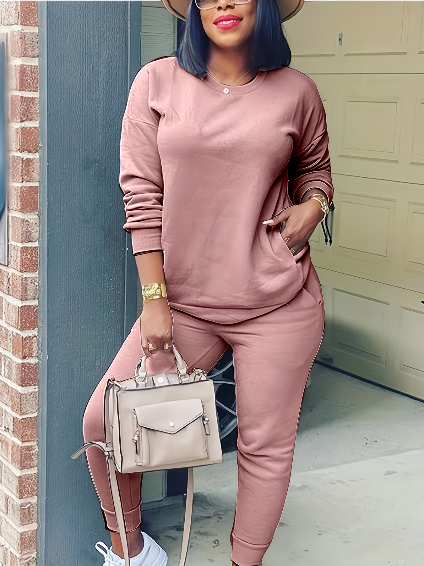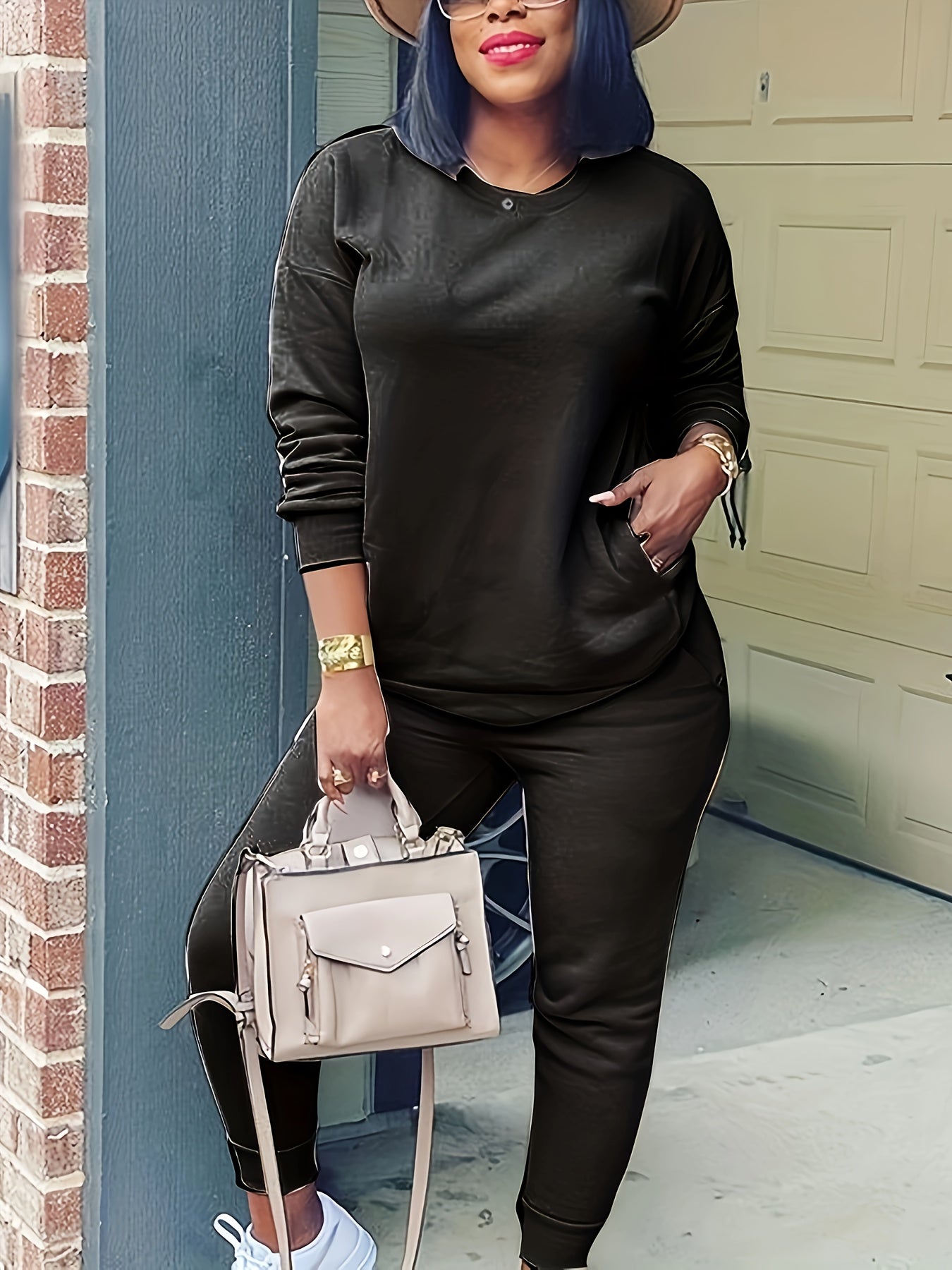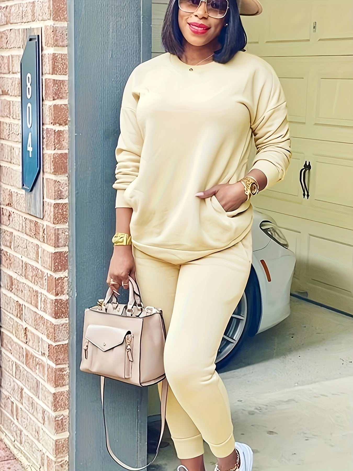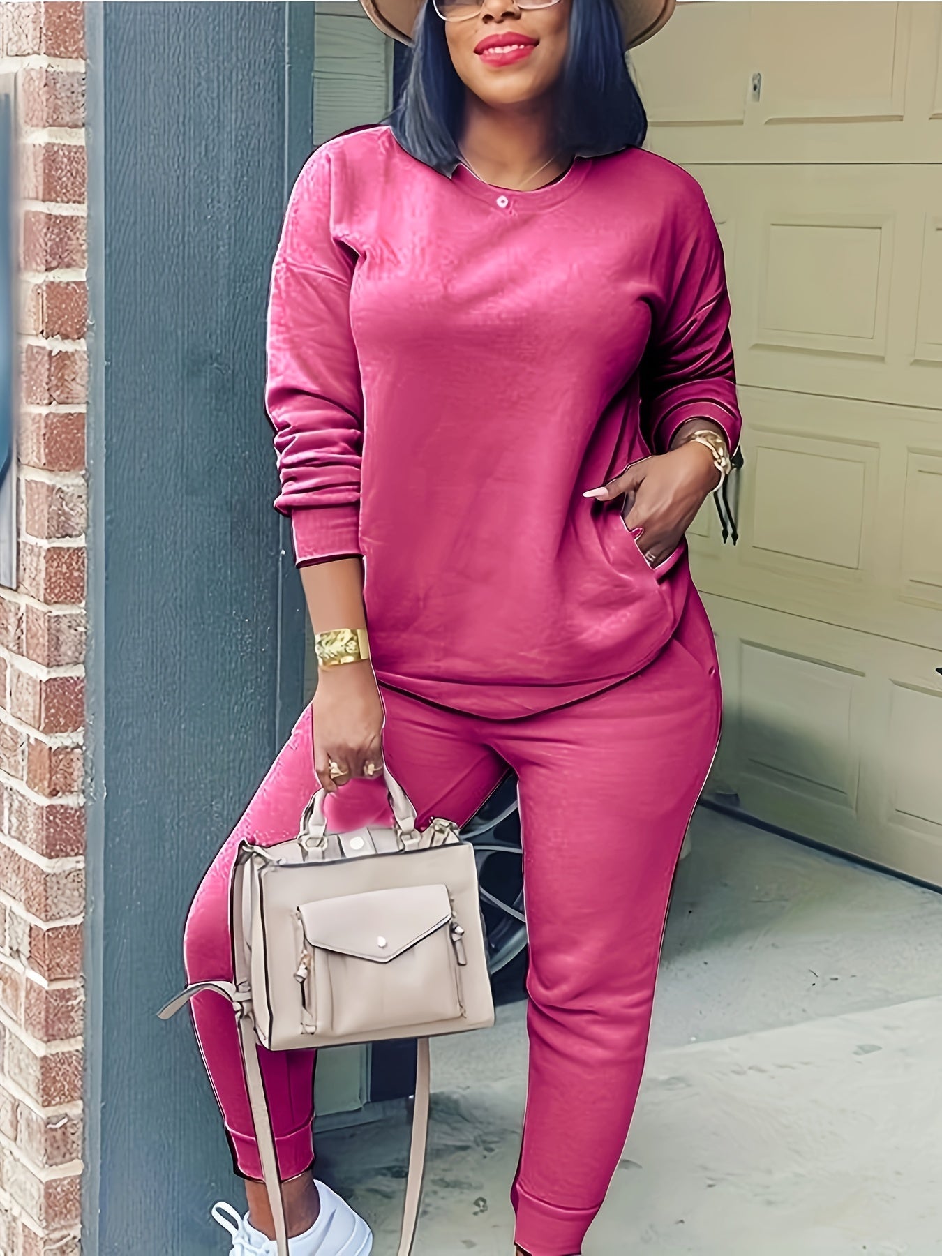 This simple women's set offers an effortless look with a minimalist design. It consists of a top and matching pants, perfect for a casual yet stylish look. Ideal for a relaxed day or a casual outing.