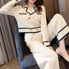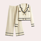 This knitted 2-piece set for women is an ideal choice for colder days. The set consists of a top and matching trousers, designed with a timeless knit pattern. A stylish combination of comfort and warmth.