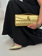 The handmade woven pattern gives the bag a unique and refined appearance, while the practical size makes it ideal for everyday use.