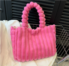 Ladies Handbag - Faux Fur - Soft Texture - Puff Handle - Trendy Casual Accessory