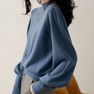 This elegant knitted sweater for women features puff sleeves, which add a subtle, fashionable look to the design. It offers both comfort and style, ideal for a refined look in the colder months.