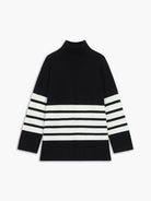 This striped sweater offers a modern design with a contemporary look. The pattern creates a bold yet timeless aesthetic, making it a versatile addition to your wardrobe.