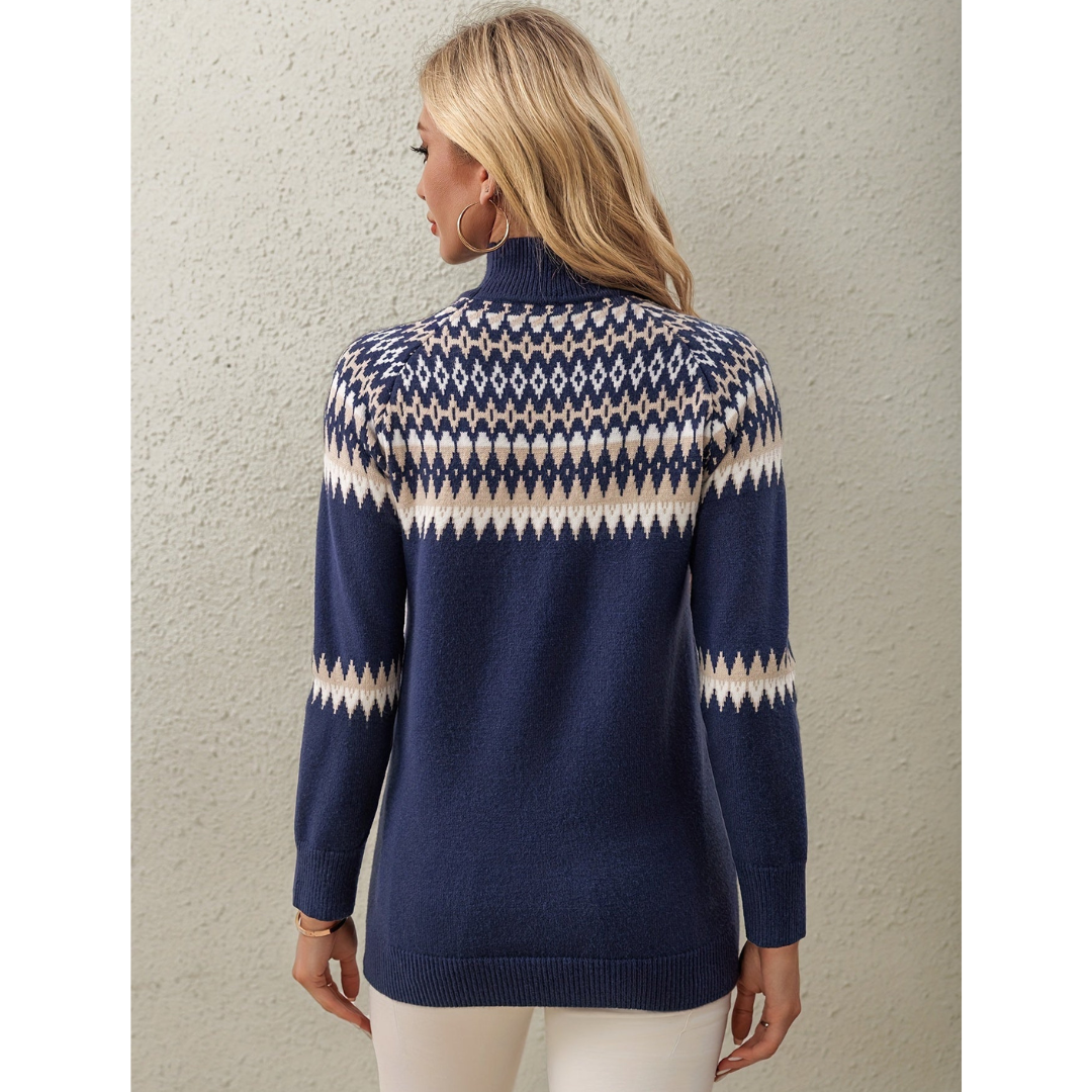 This warm women's sweater with long sleeves is an essential choice for the winter season. With a subtle design that is easy to mix and match, this sweater offers a stylish and practical addition to your wardrobe. Perfect for everyday wear or cozy moments at home.