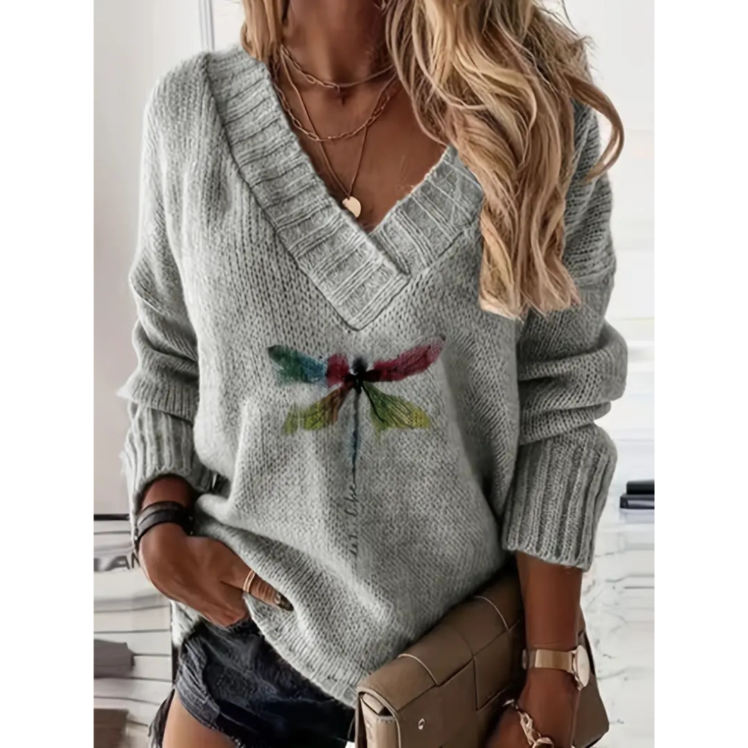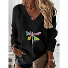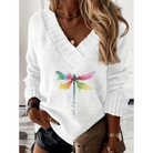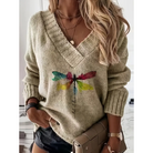This women's winter V-neck sweater with long sleeves has a simple and stylish design, ideal for the colder months. It offers a comfortable fit and can be easily paired with other clothing items.
