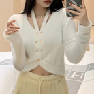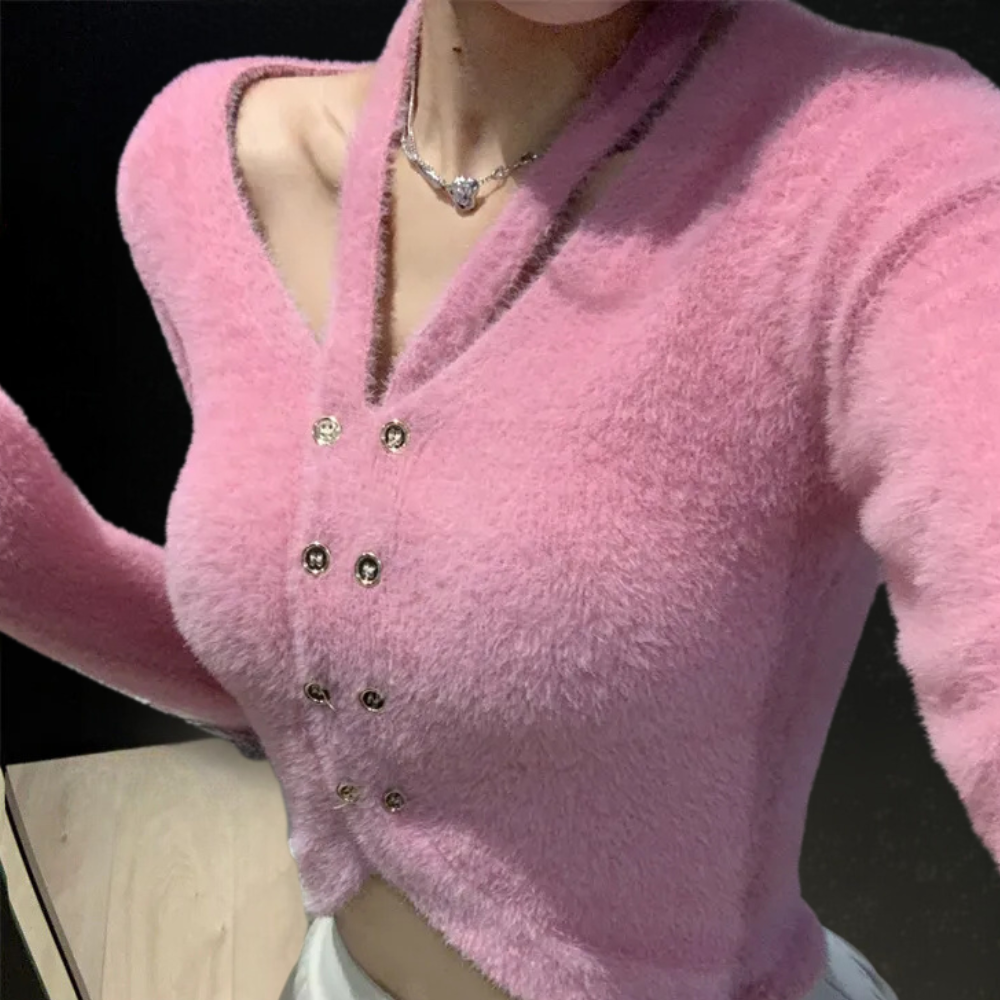 This stylish cropped sweater for women offers a contemporary look with a modern twist. The compact design makes it a versatile garment that is easy to pair with different outfits for a chic, casual appearance.