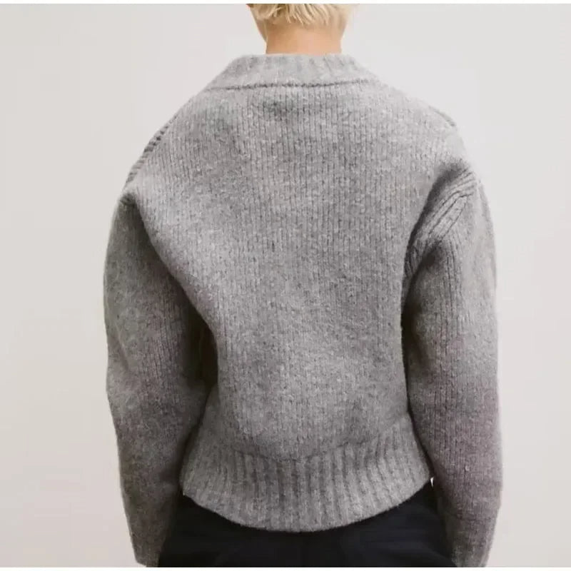 A versatile and timeless garment, this knitted cardigan is perfect for all seasons. Whether you wear it as a layer on colder days or as a light jacket in the spring, the cardigan offers both comfort and style.