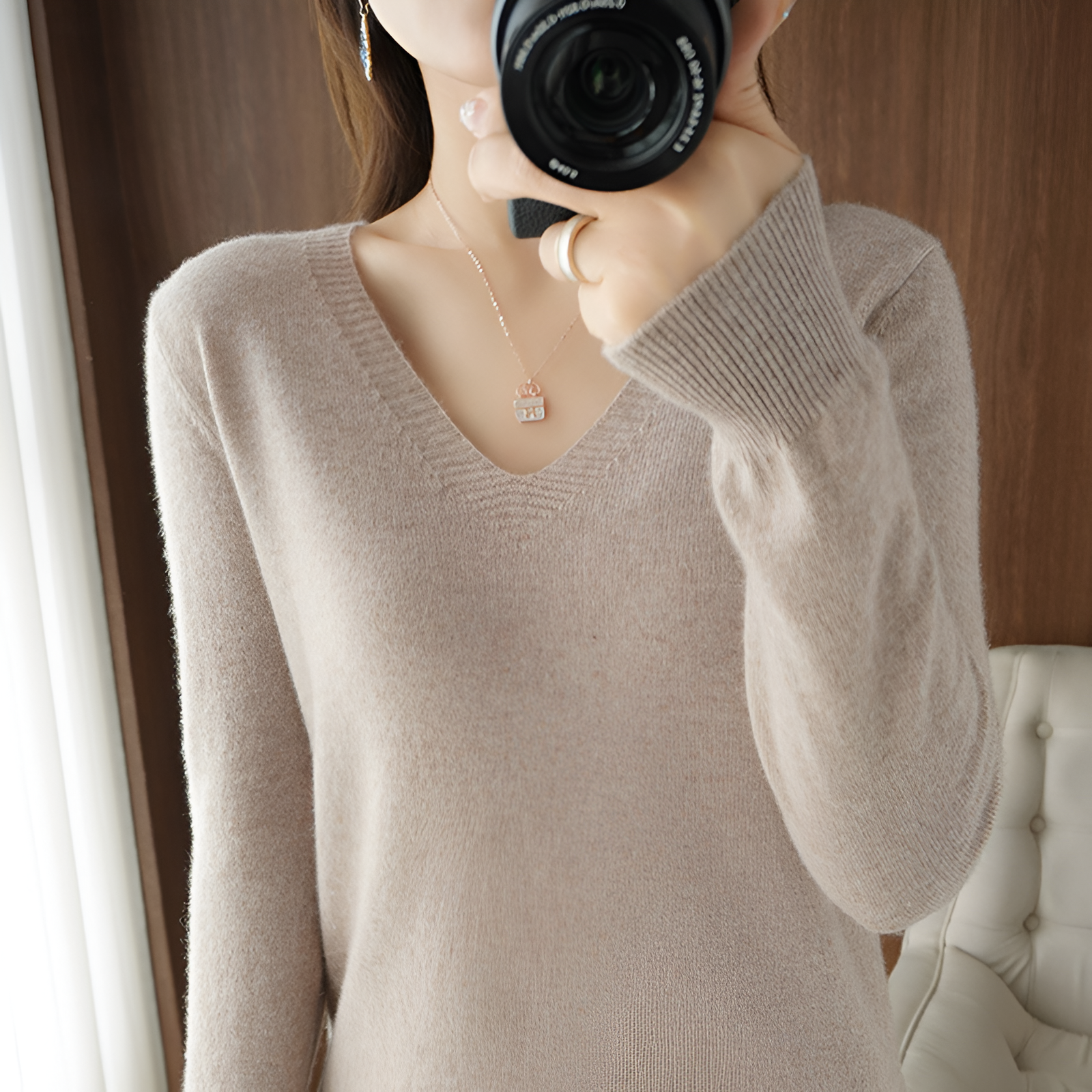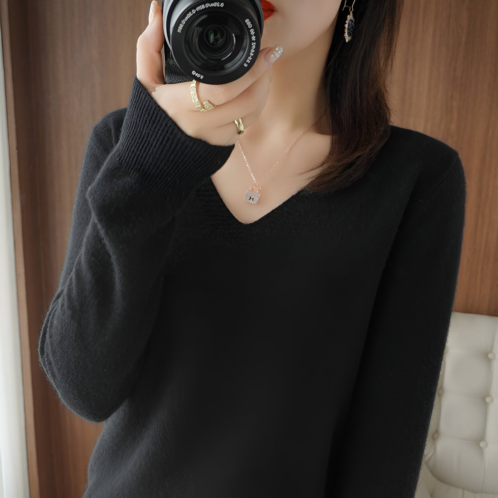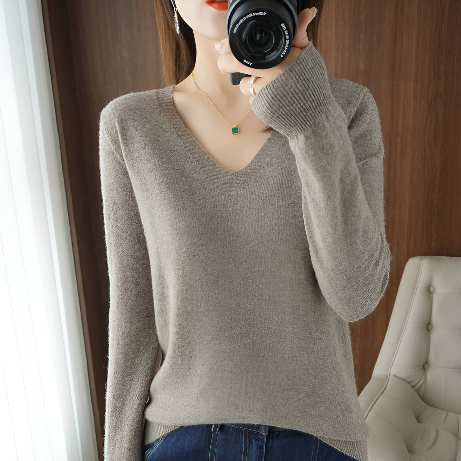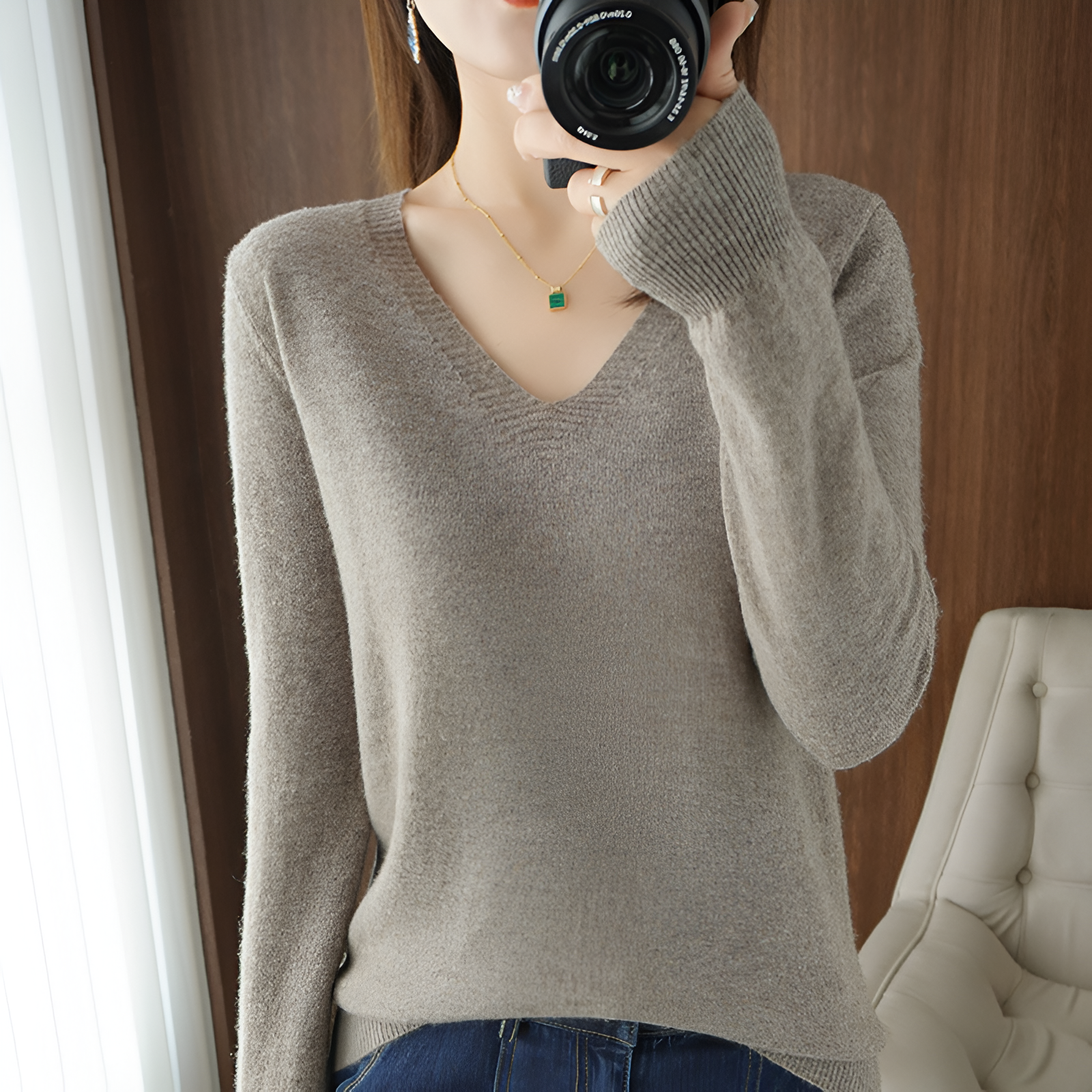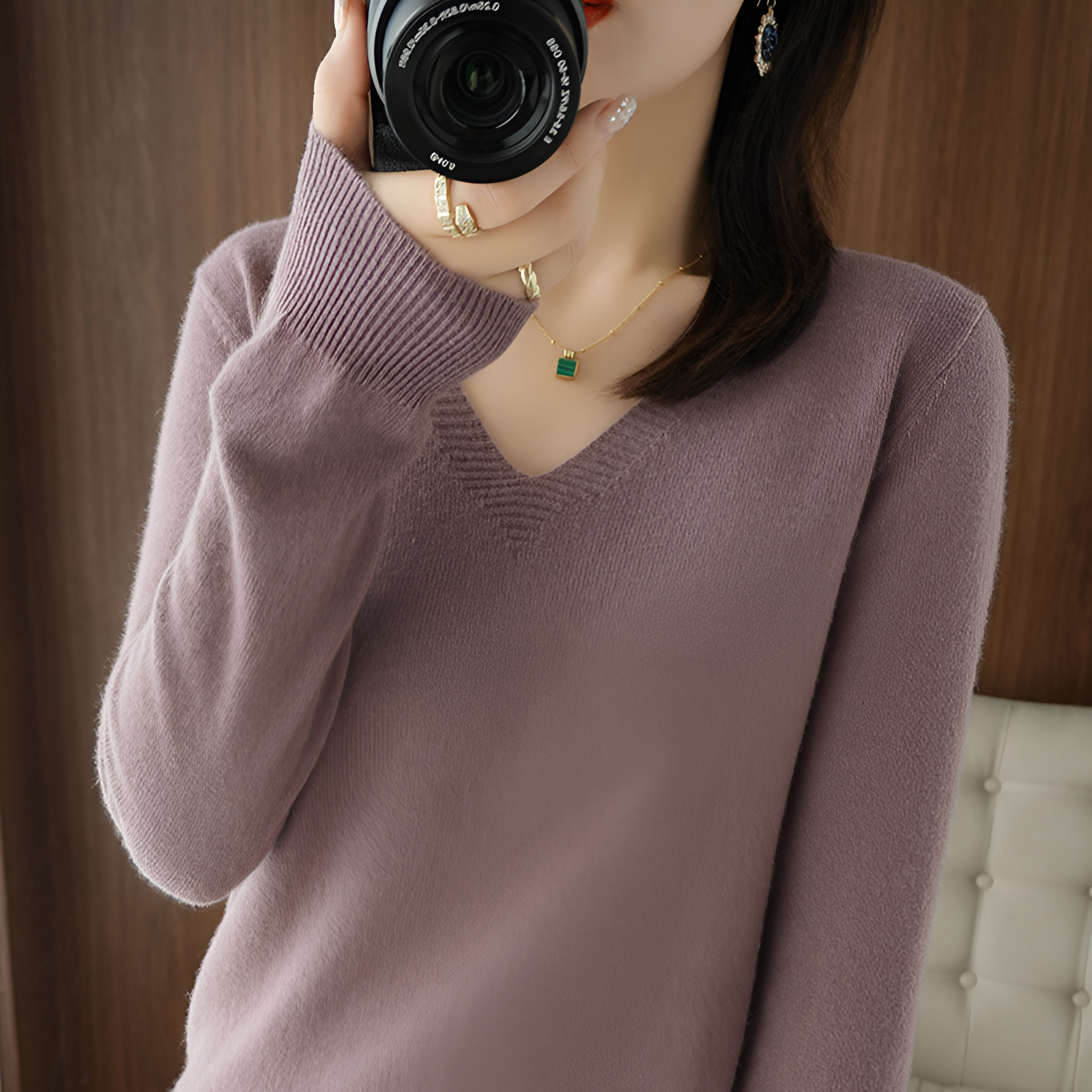This women's sweater with a V-shaped neckline offers an elegant and versatile look, ideal for any occasion. The V-neck design accentuates your appearance, while the sleek fit provides a flattering silhouette.