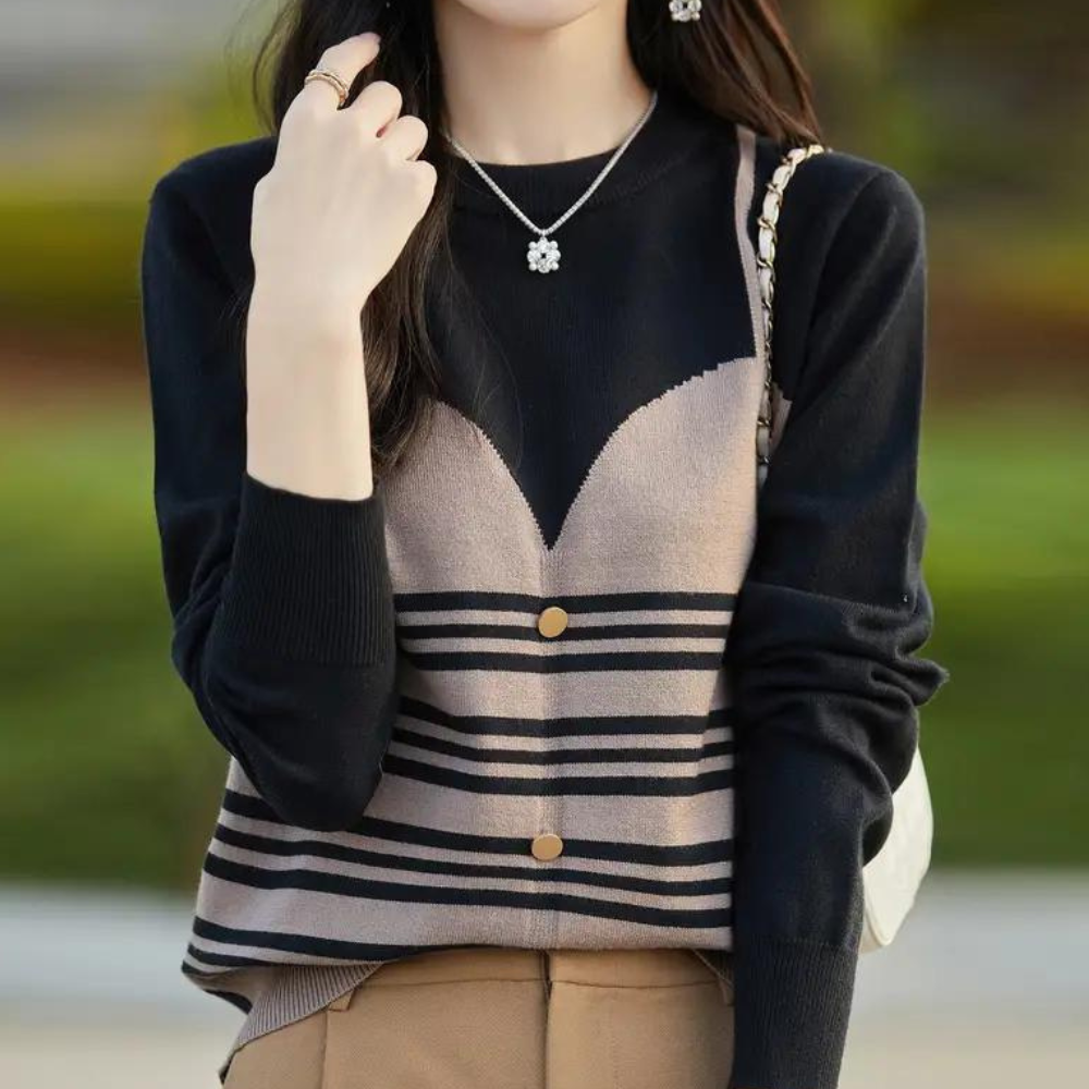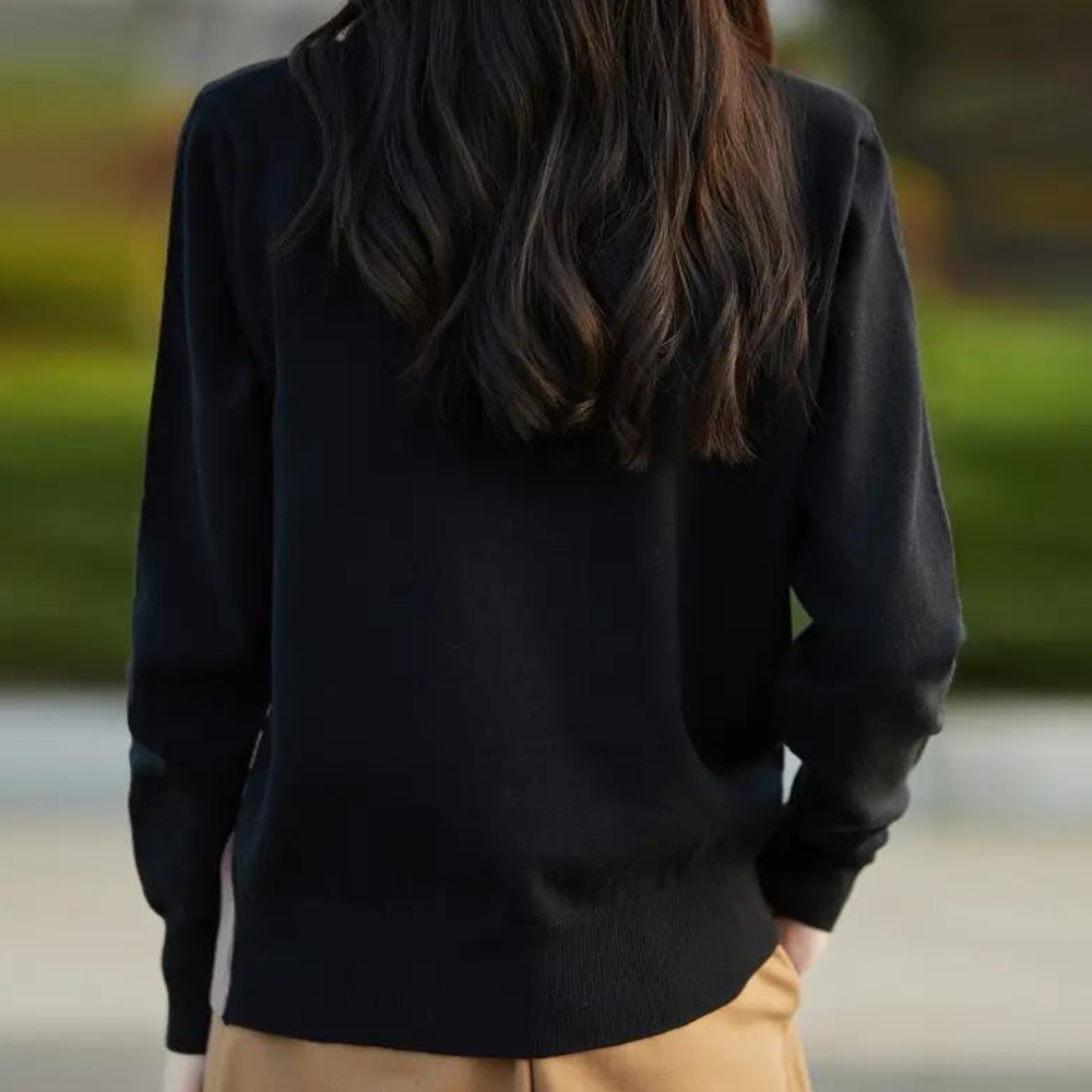 This refined knitted sweater for women offers an elegant and timeless appearance, perfect for cooler days. The delicate knit pattern and refined fit create a chic look, while the soft fabric provides comfort all day long.