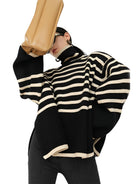 With a playful combination of patterns and a relaxed fit, this striped oversized sweater offers a stylish yet comfortable look. Perfect for casual days or as a statement piece in your everyday outfit.