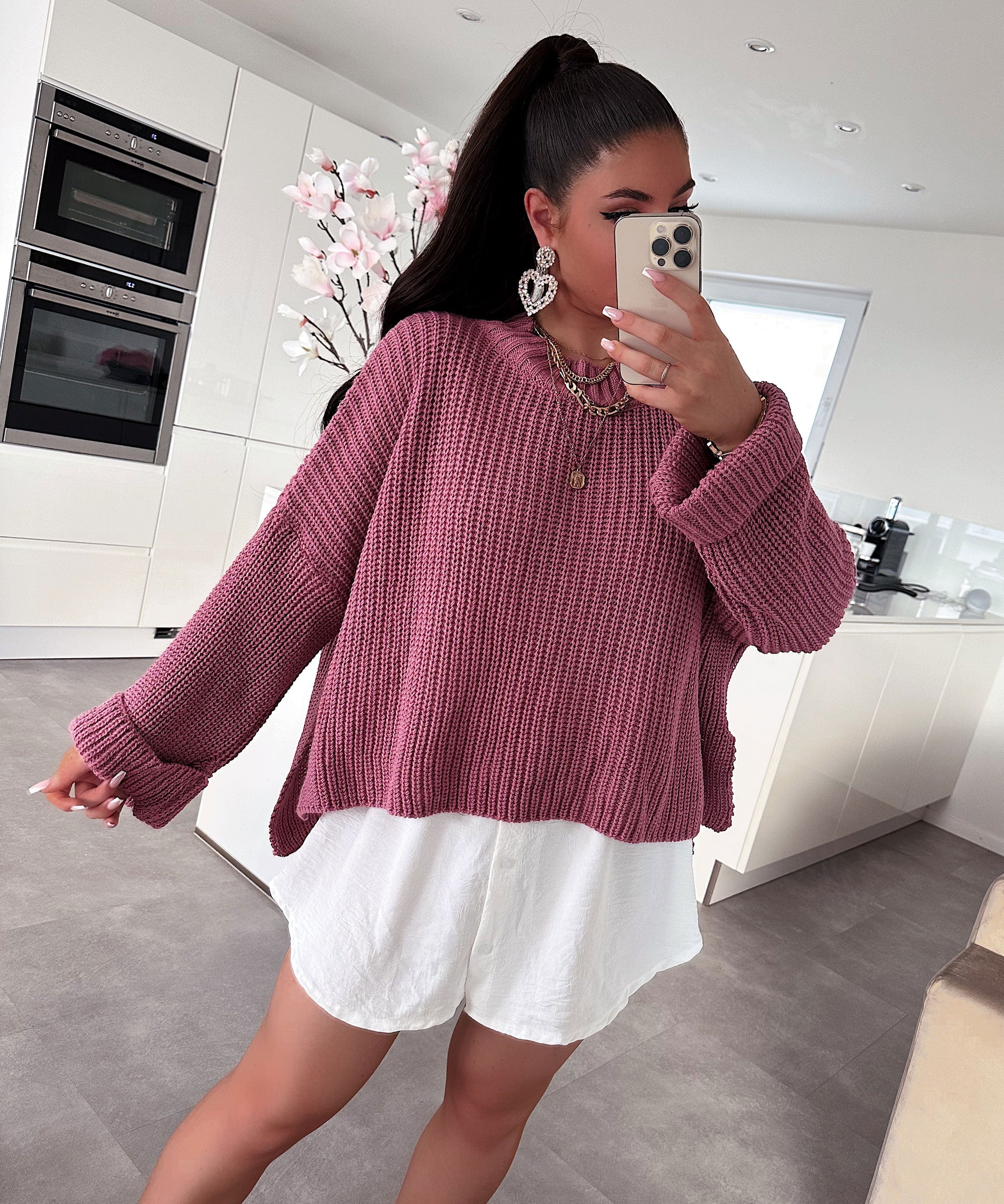 This pink women's sweater offers a fresh and playful appearance, ideal for a casual yet stylish look. The soft color and comfortable fit make it a perfect choice for everyday wear, while the design adds a subtle refinement to your outfit.