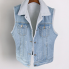 This trendy denim vest for women features a contemporary design that offers a casual and fashionable look. It is a versatile garment, perfect for adding a playful and edgy touch to your look.