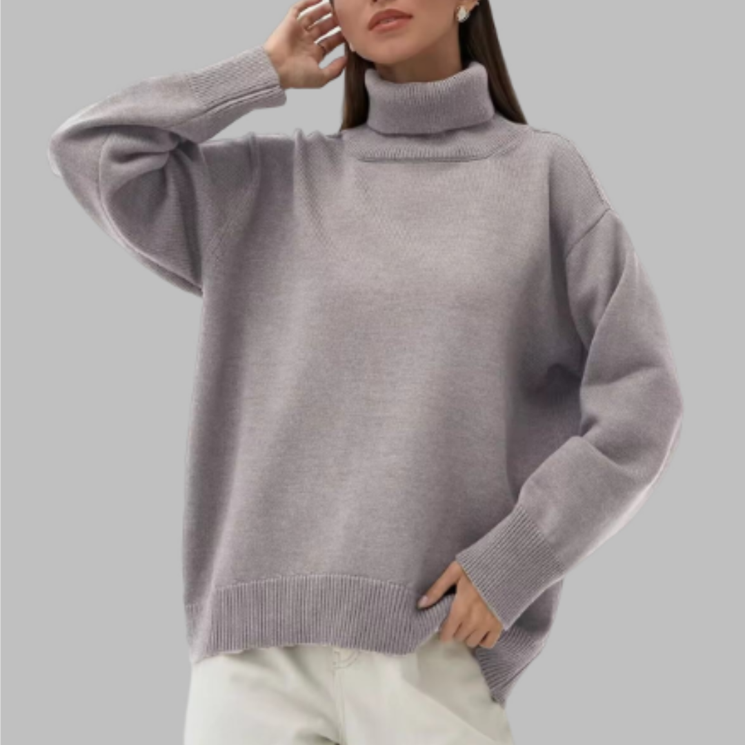 Ladies Turtleneck Sweater - Oversized Fit - Ribbed Edges - Soft Warm Fabric