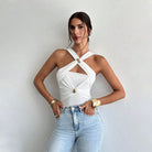Embrace style with the Women's Halter Top – Slim Fit – Cropped Length – Ruched Front – Metallic Details. This trendy halter top with a slim fit and modern ruched front accentuates your figure. Perfect for any occasion, from casual to chic, with subtle metallic accents that add an elegant touch. Your new favorite top for an effortless, stylish look.