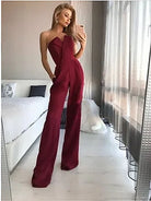 Experience pure elegance with the Women's Jumpsuit – Strapless Asymmetric Neckline – Tailored Fit – Wide Legs. This jumpsuit accentuates your figure with a tailored fit and wide legs. The unique strapless asymmetric neckline creates a modern, chic look, perfect for any special occasion. Feel confident and stylish.