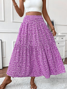 Women's long skirt - elastic waist - ruffle pattern - floral print