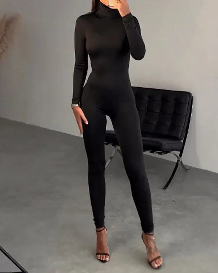 Women's Jumpsuit – Slim Fit – Long Sleeves – Turtleneck – Elegant Stretch Fabric