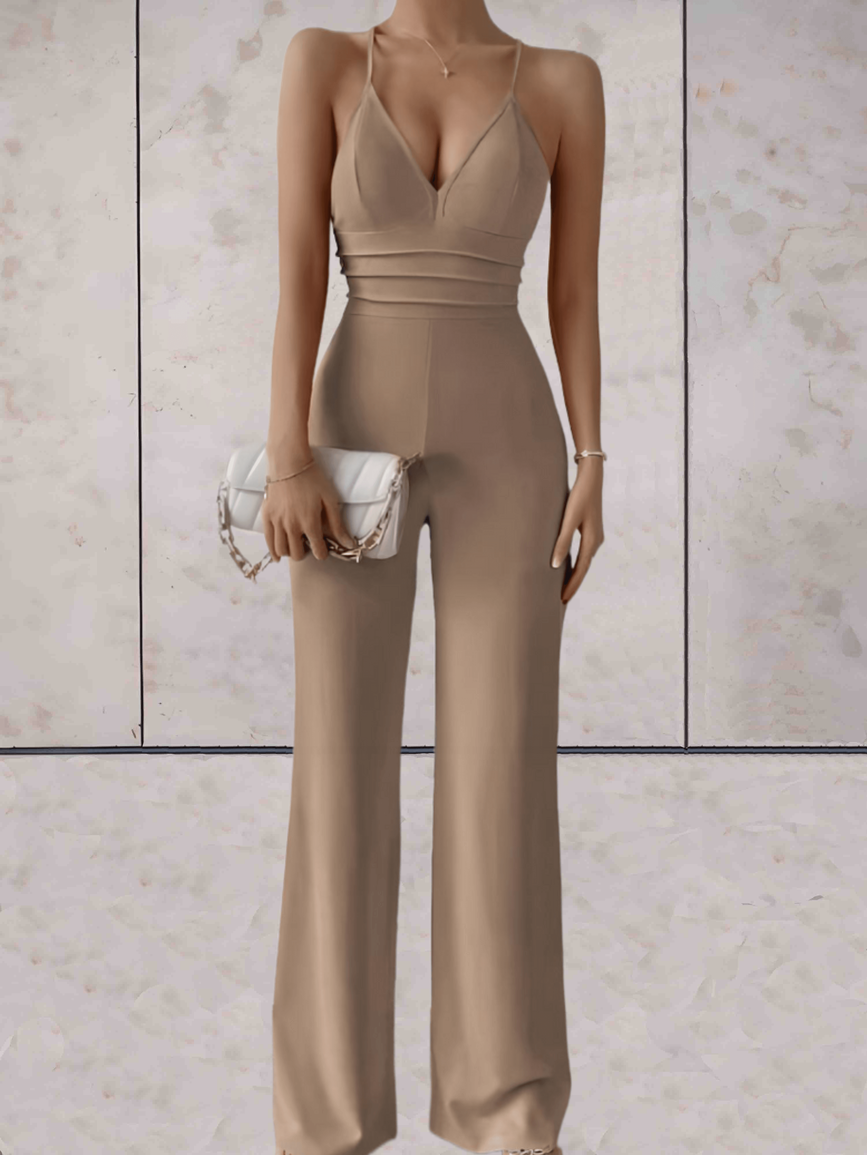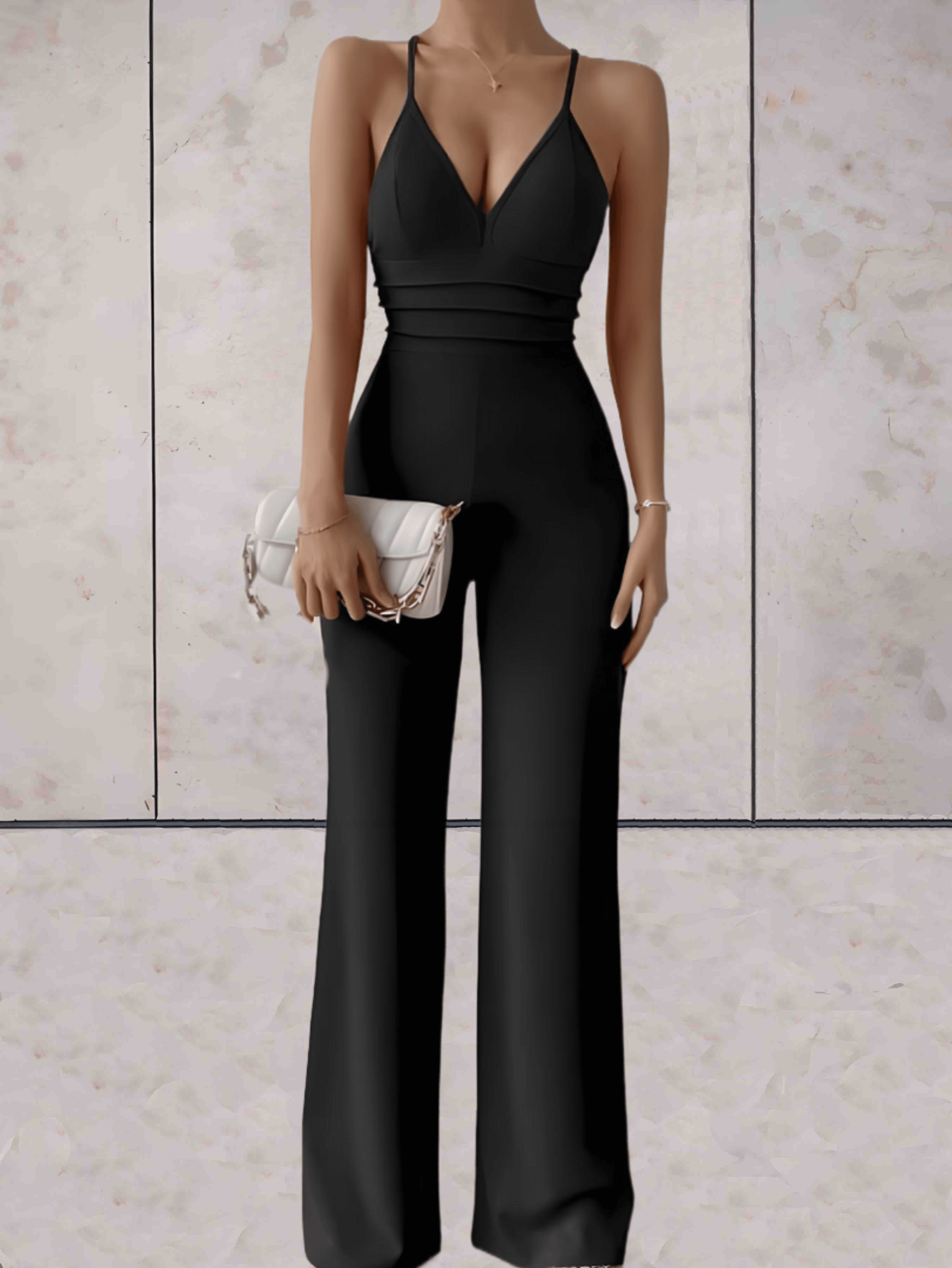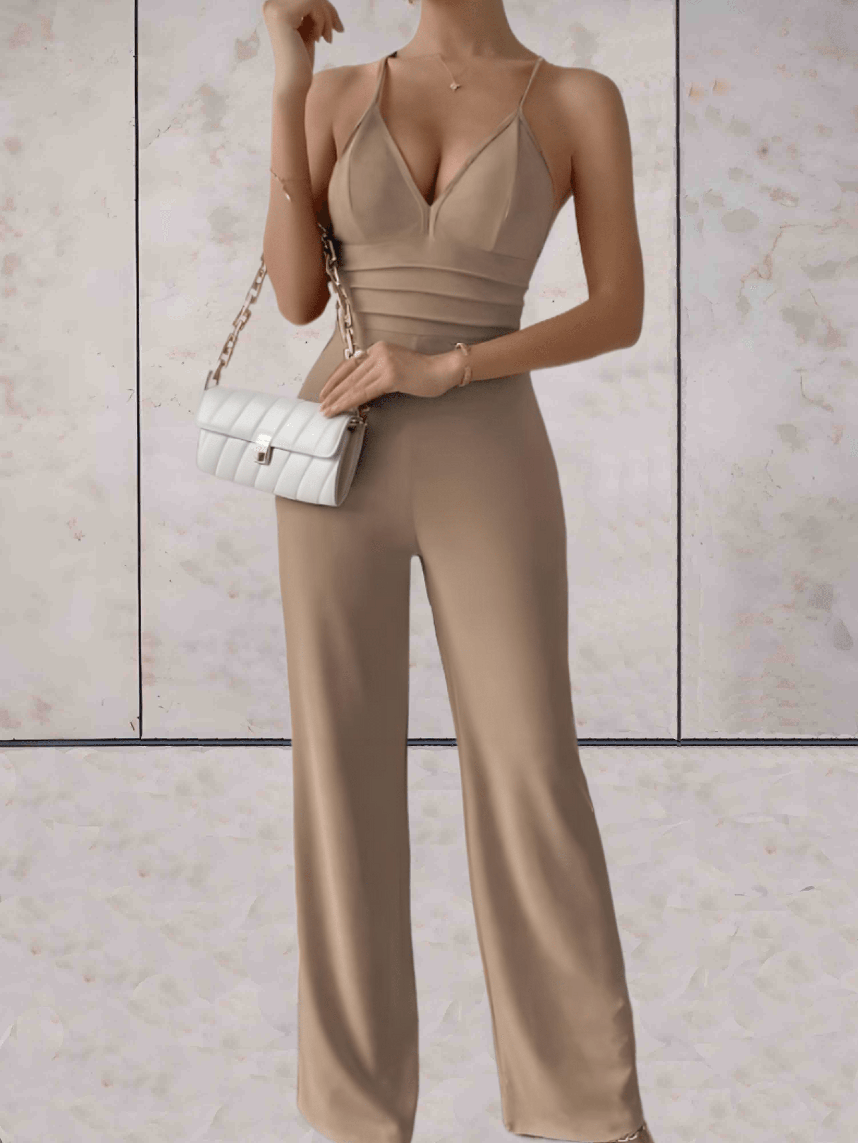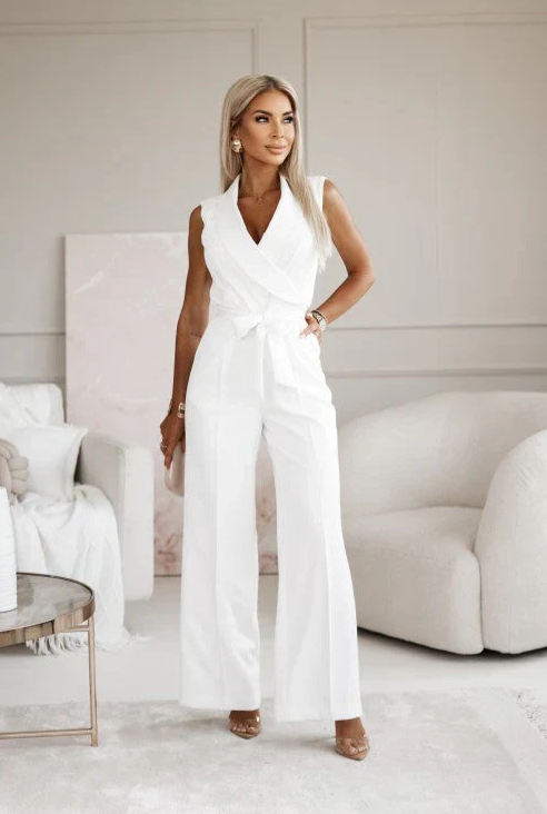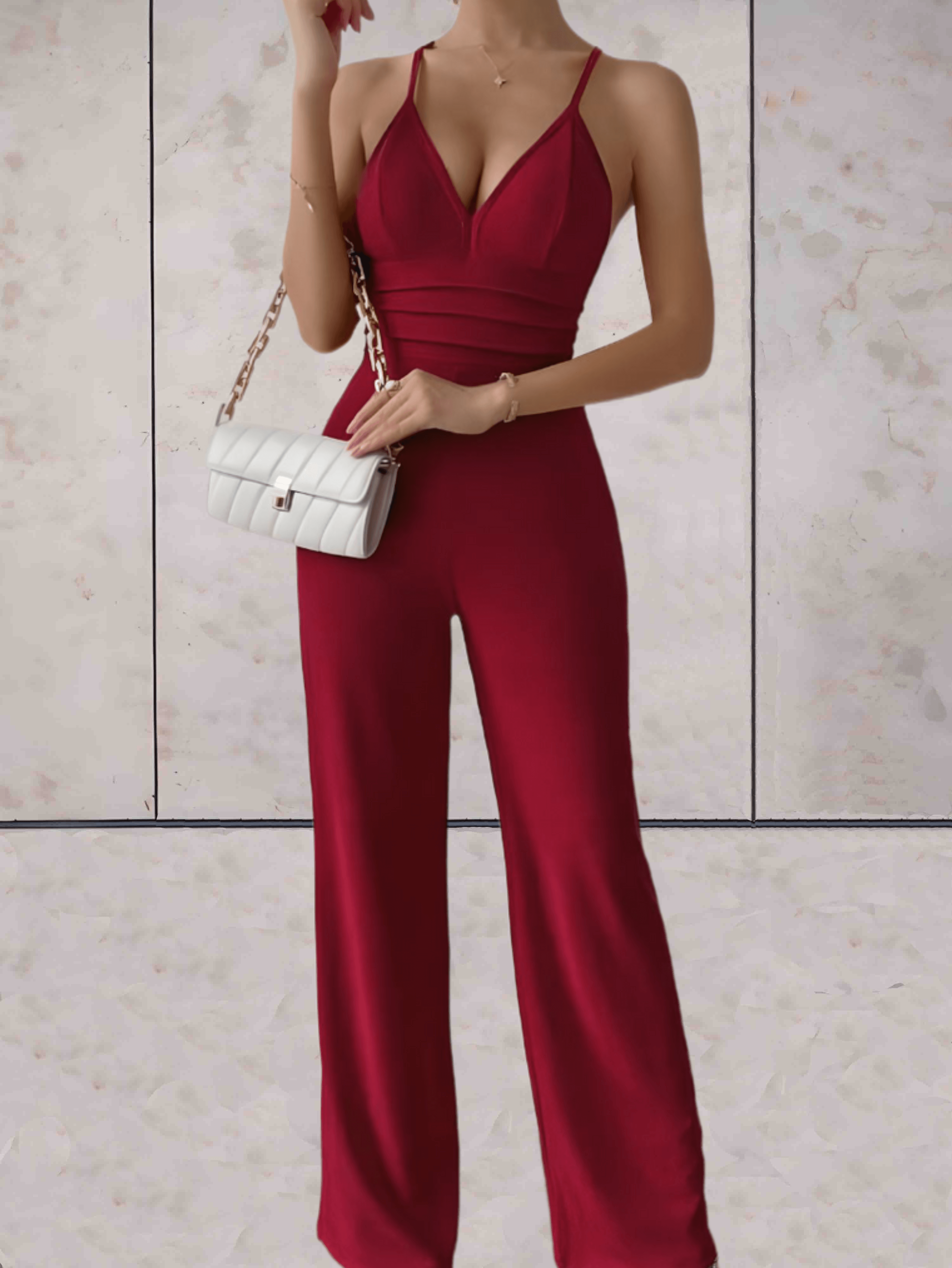 Elegant Jumpsuit with V-neck and Wide Legs for Women