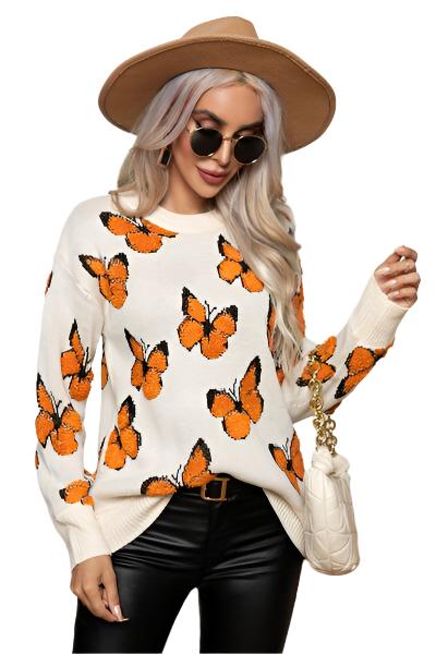 Ladies' Sweater With Long Sleeves And Butterfly Print