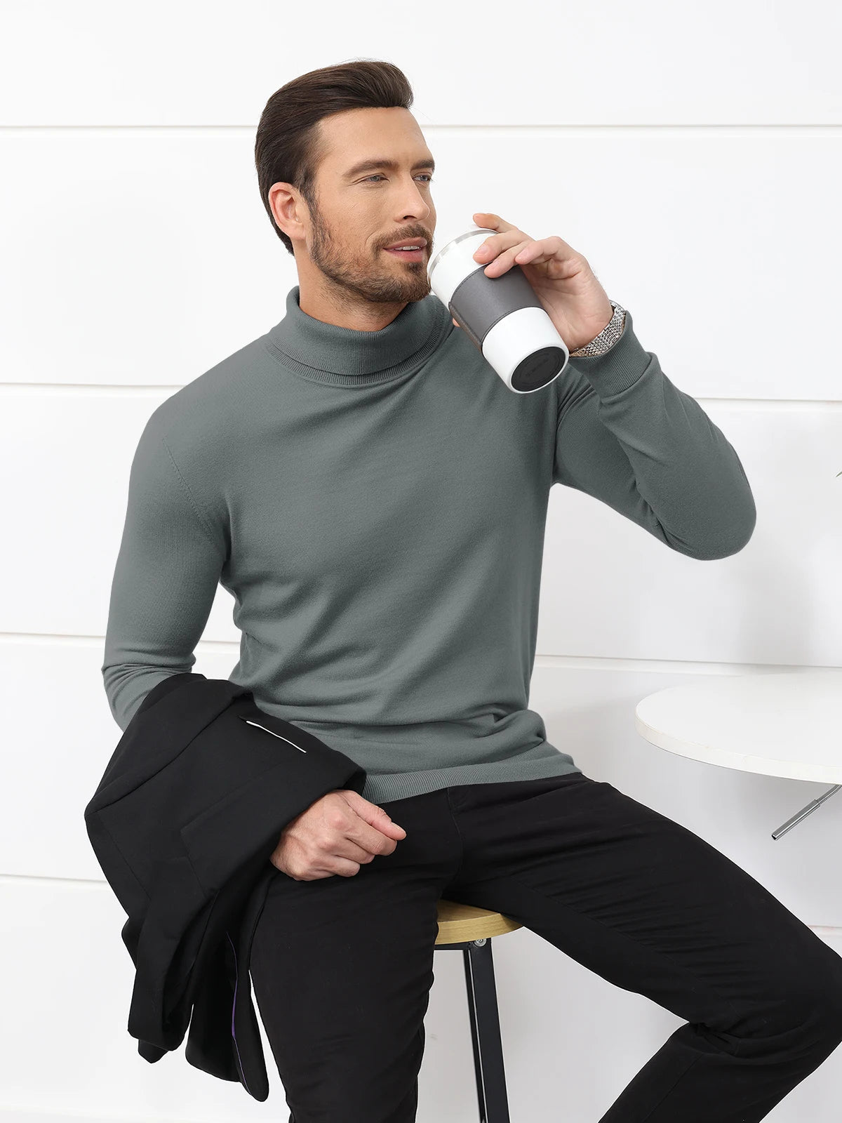 Men's Turtleneck Sweater - Slim Fit - Fine Knit - Classic and Minimalist Design