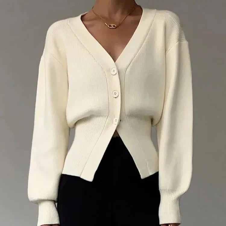 This V-neck cardigan combines simplicity with elegance, making it a versatile and timeless garment. The V-neck offers a refined look, while the button fastening and comfortable fit make it perfect for a variety of outfits. Ideal to wear as a layer or on its own for a casual yet polished look.