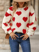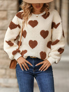 - Playful heart print: The heart print gives the sweater a charming yet elegant look.