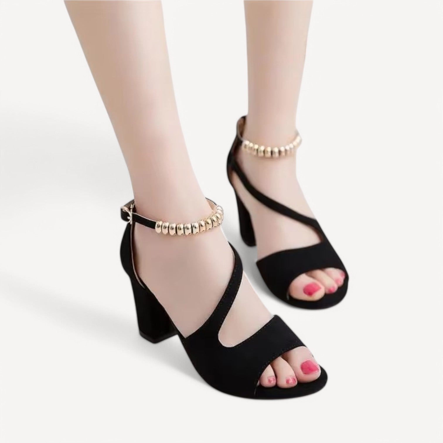 Jules | Women's Sandals with Block Heel – Ankle Strap Model with Decorative Detail