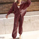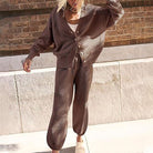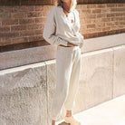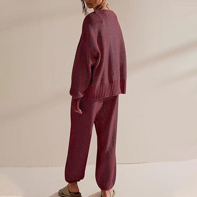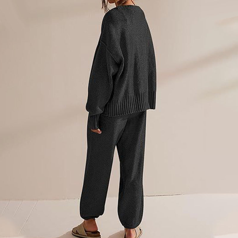 This cozy sweater set for women combines comfort and style in one look. The simple design and relaxed fit make it the ideal choice for a laid-back yet fashionable appearance.