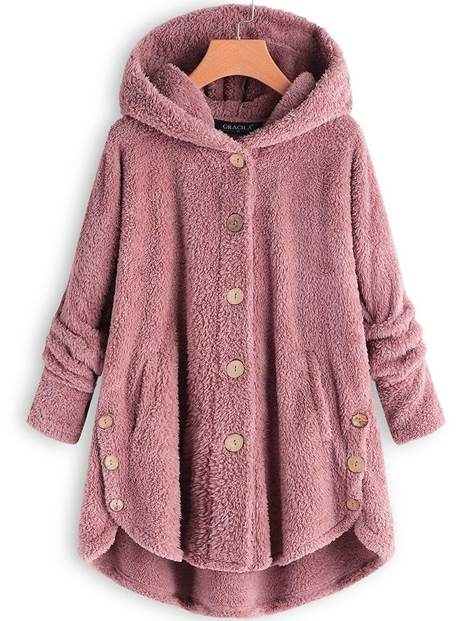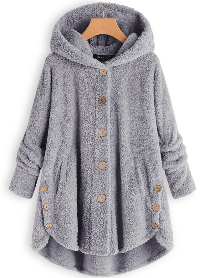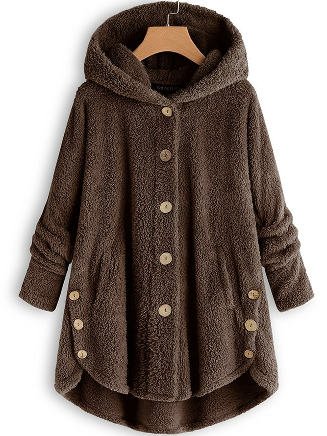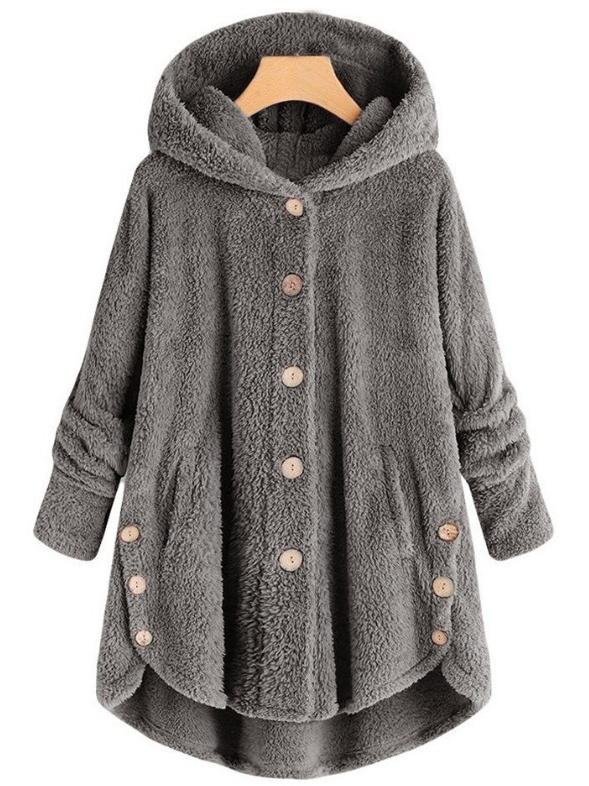This loose monochrome teddy hoodie coat is an ideal combination of style and comfort. With a soft teddy texture and a relaxed fit, this coat is perfect for cold days, while the minimalist monochrome design offers a modern look.