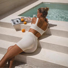 Women's Bikini Set – Ribbed Stretch Fabric – Low-Cut Crop Top – High Waist Shorts