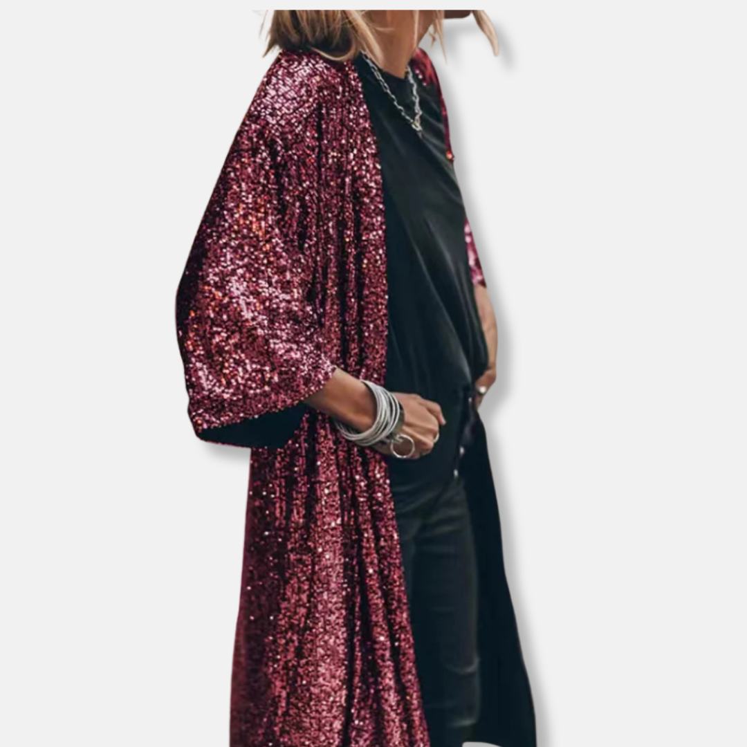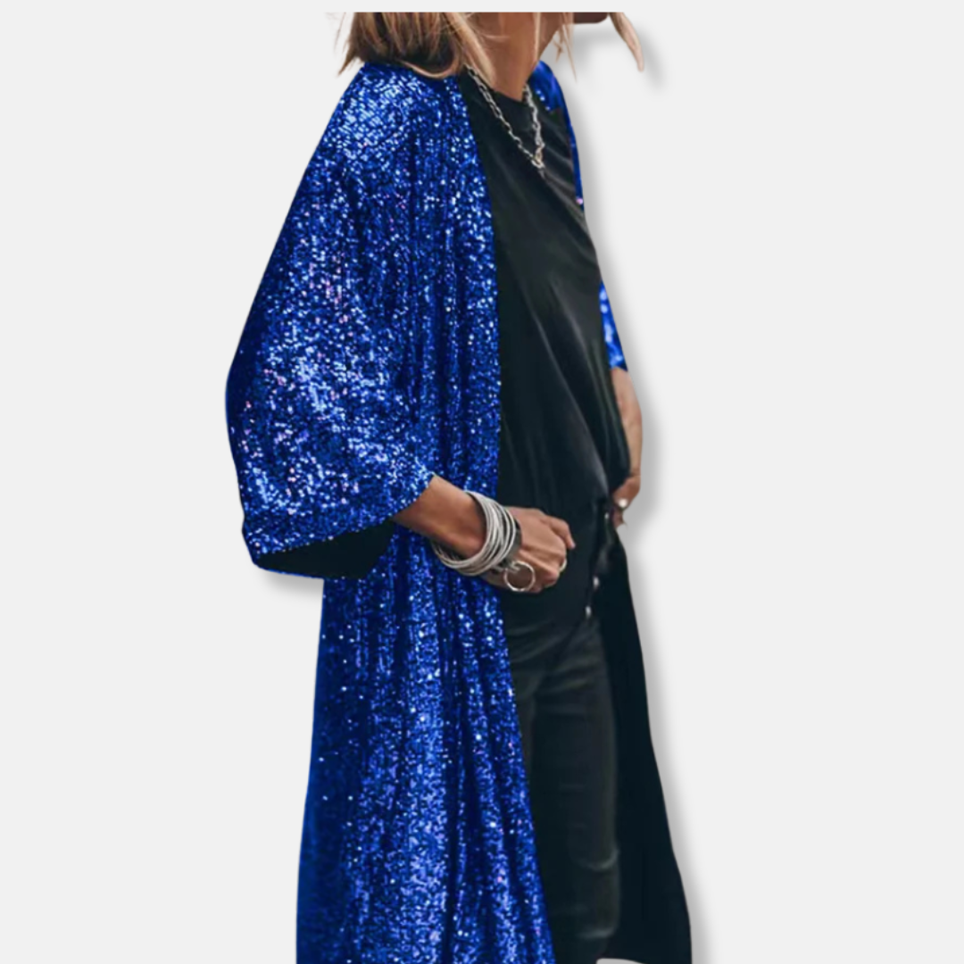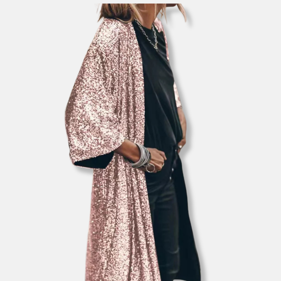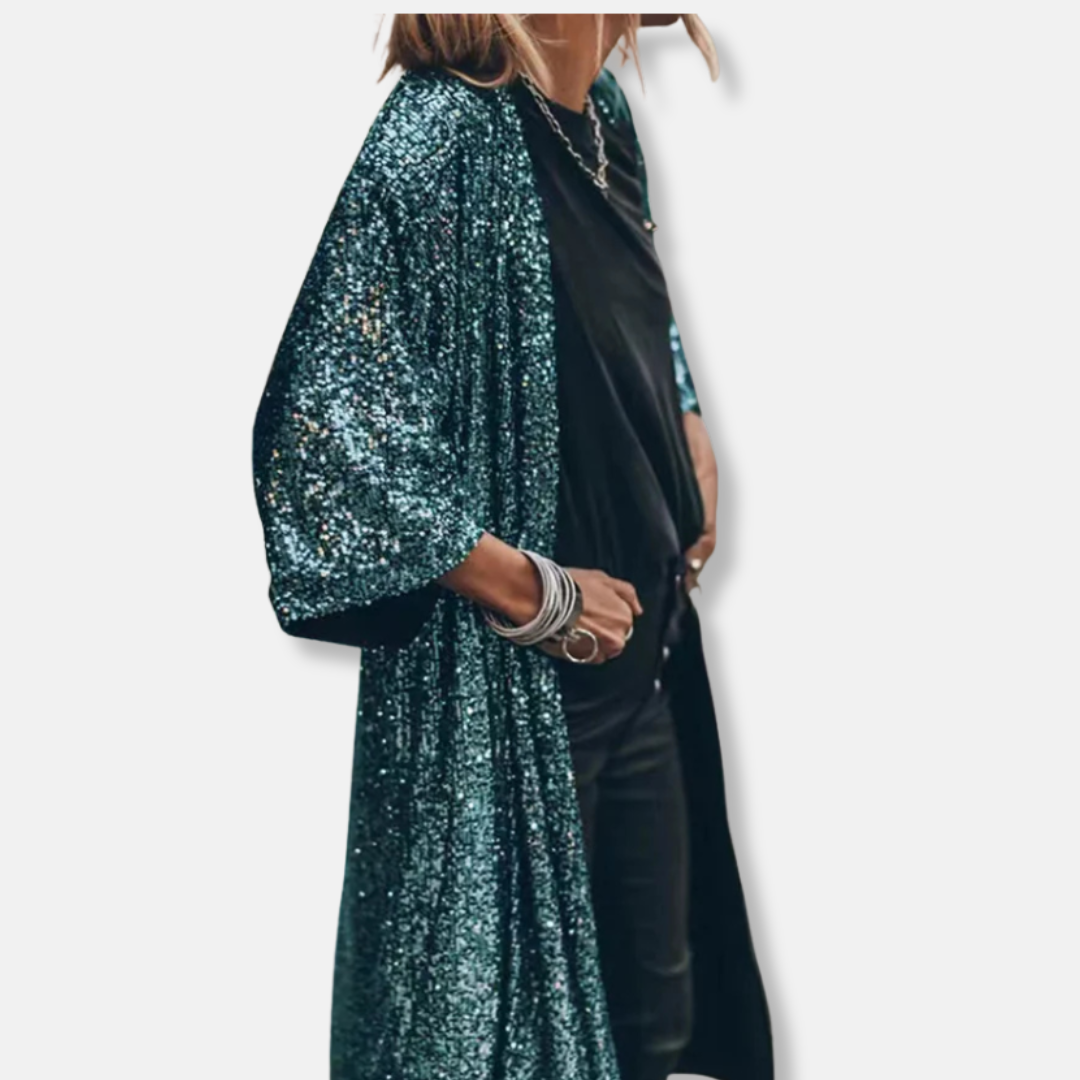 Women's Duster Vest – Loose Fit – Sequins – Open Front – 3/4 Sleeve