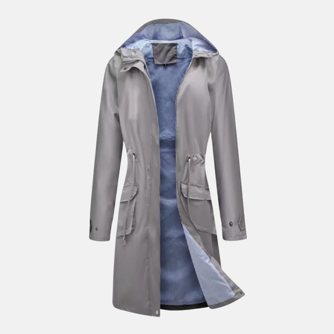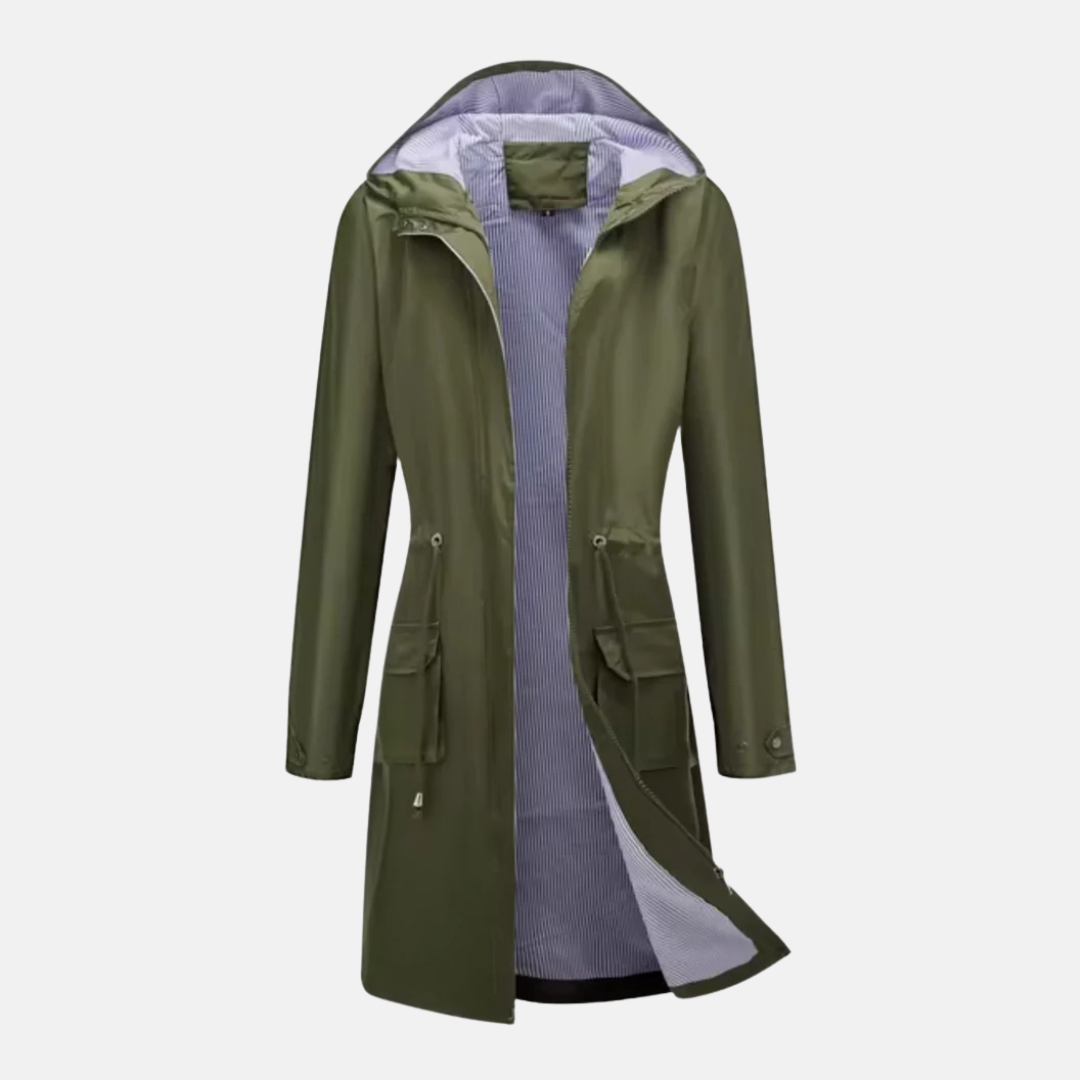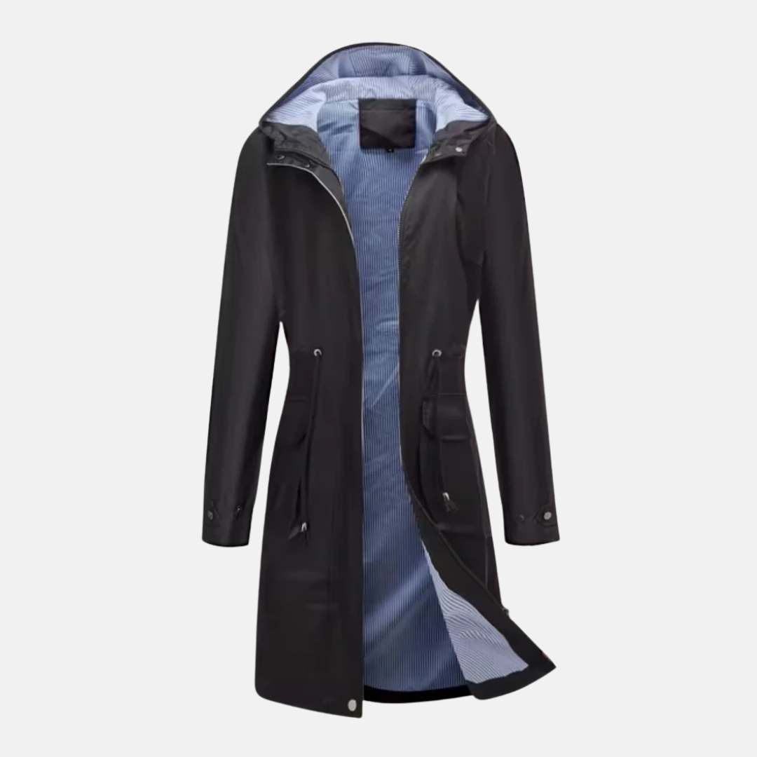 Women's Coat with Hood – Long Model – Water-Repellent – Adjustable Waist – Pockets