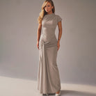 Women's evening dress – Tailored fit – Silky soft fabric – Draping – Short sleeve