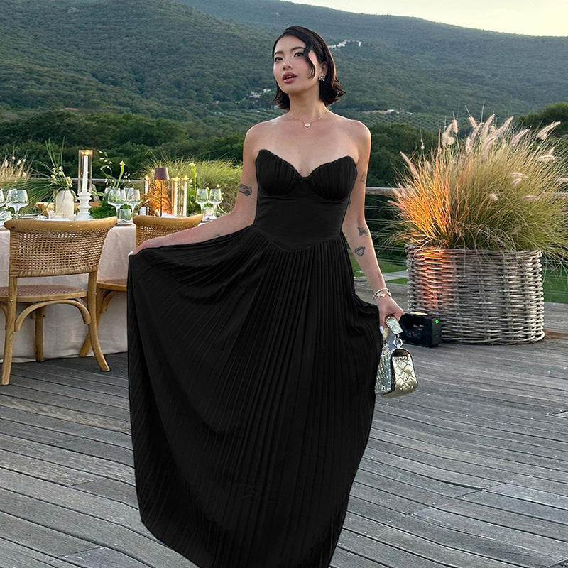 Women's evening dress – Strapless V-neck – Luxe fabric – Pleated skirt – Open back: The perfect choice for an elegant look. With a flattering strapless V-neck design, luxe fabric and a graceful pleated skirt with an open back, you'll shine at any formal event.