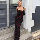 - Design: Slim fit maxi dress with spaghetti straps, floral print and lace details